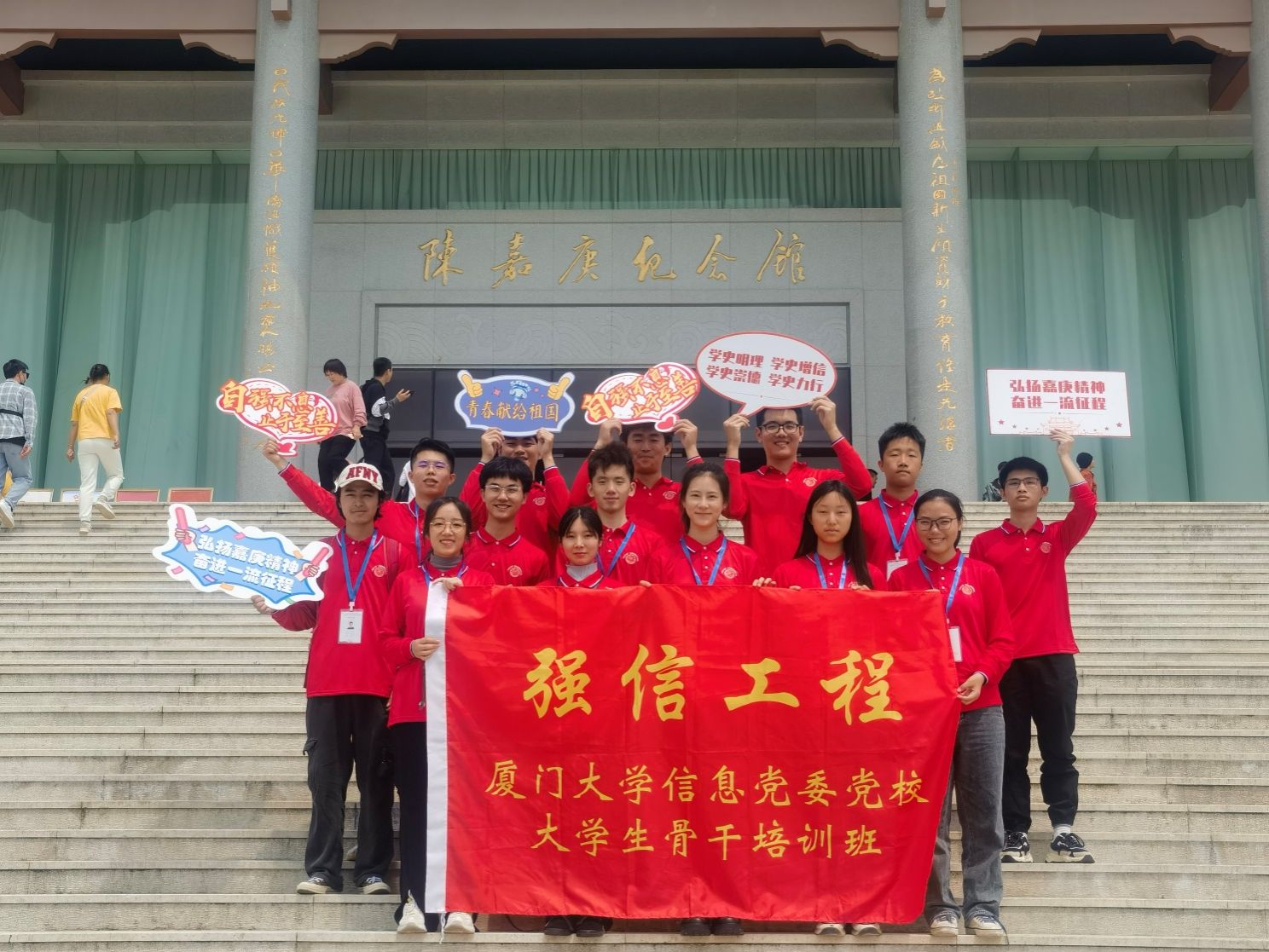 为深入学习贯彻党的二十大精神,贯彻落实习近平总书记关于思政课建设的重要指示精神,落实高校立德树人根本任务,进一步提高 “大思政课”建设水平,4月2日上午,信息学院党委组织“强信班”学员代表赴集美陈嘉庚纪念馆开展“行见八闽”大思政课研学实践活动。马克思主义学院傅丽芬副教授作为指导老师,信息学院党委副书记郑镇锋、团委书记龚树丰作为带队老师,团委副书记蔡婧蓉、辅导员贾君、刘心和参加研学。