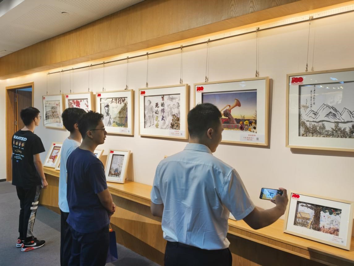 支部成员们首先参观了在德旺图书馆集中展出的“厦门大学翔安校区‘中国共产党人的精神谱系’植物贴画设计大赛” 40余件优秀作品。系列作品以“开天辟地”、“改天换地”、“翻天覆地”、“惊天动地”四部分进行布局,采用植物贴画制作与绘画、书法、刺绣、剪纸等相结合的形式呈现以致敬“中国共产党人的精神谱系”。