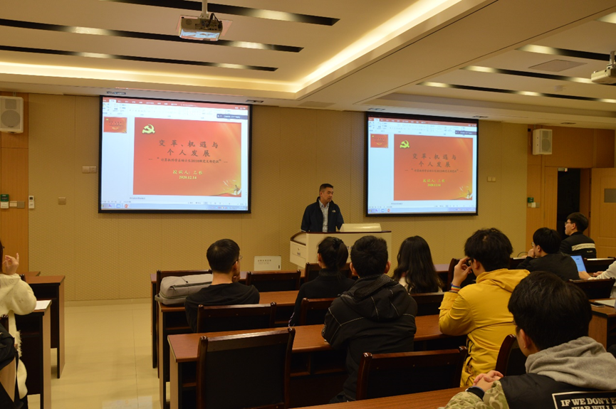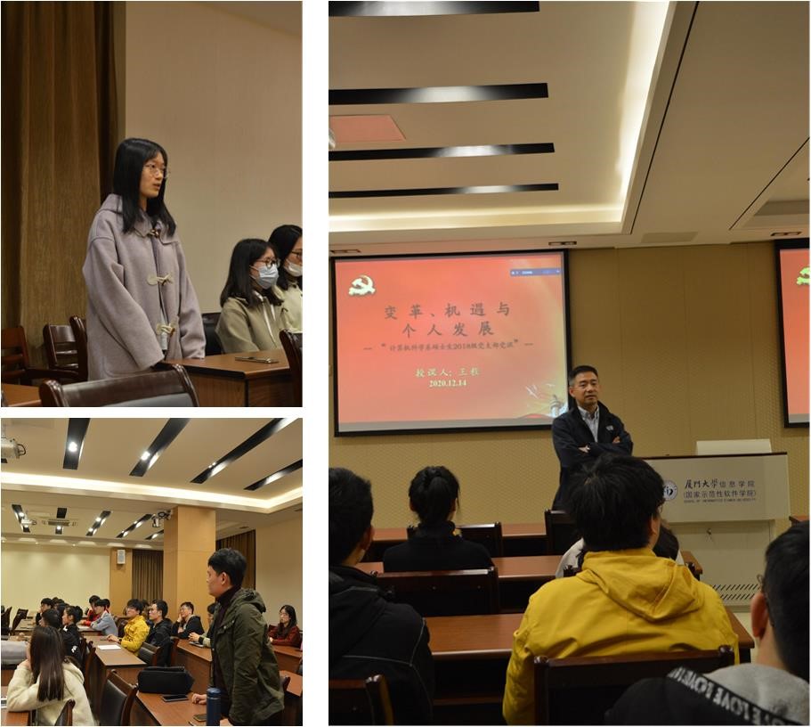 2020年12月14日晚上7:30,厦门大学信息学院计算机科学系硕士生2018级党支部于海韵行政楼C505会议室召开 “变革、机遇与个人发展” 主题党课,学院党委副书记、副院长王程教授主讲,支部书记游建议同志主持。此次党课采用线上线下结合的方式进行,党支部34名党员参加了此次活动。