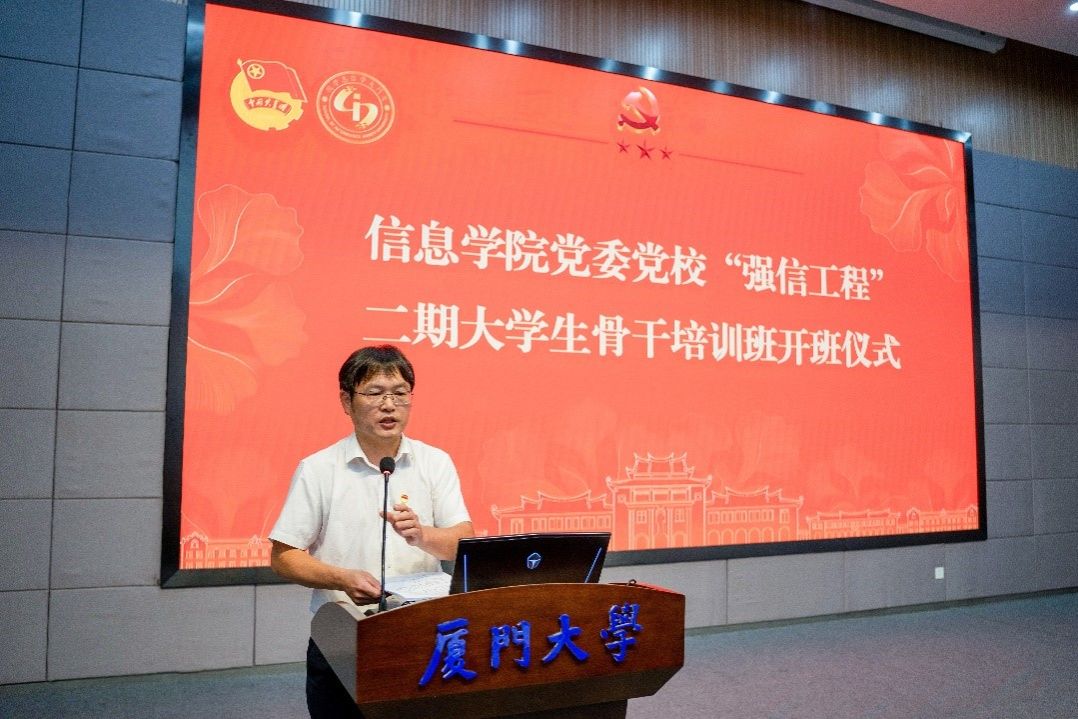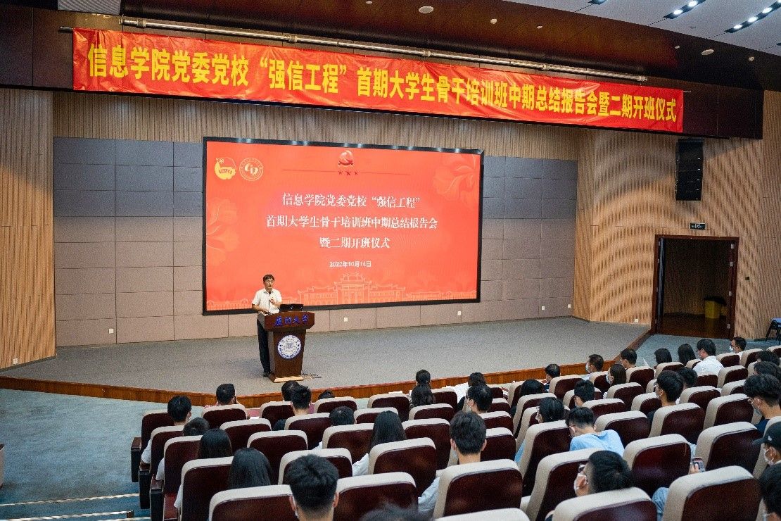在全院上下喜迎党的二十大胜利召开之际,10月14日下午,信息学院党委党校“强信工程”首期大学生骨干培训班中期总结报告会暨二期开班仪式在翔安校区举行。