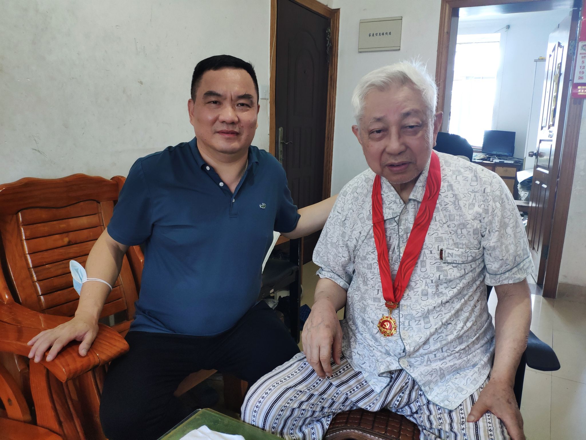 6月28日上午,信息学院党委开展“七一”慰问老党员活动。院党委书记刘弢上门看望了计算机科学与技术系退休党员王士铁老师,代表学院党委向他致以亲切问候,并为王老师佩戴“光荣在党50年”纪念章。