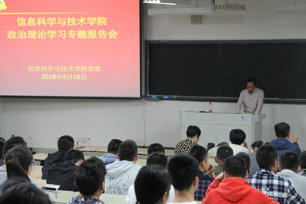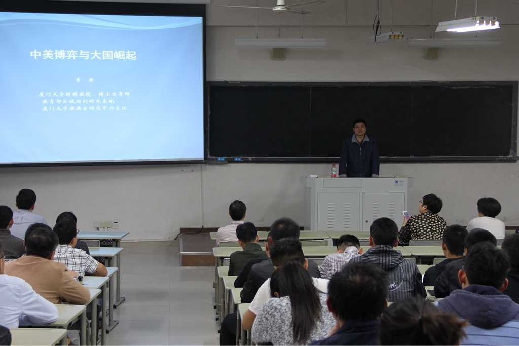 2018年4月16日下午,信息学院2018年政治理论学习活动隆重举行。厦门大学港澳台研究中心主任李非教授作《中美博弈与大国崛起》专题讲座,学院党政领导、全院师生参加了本次学习活动。会议由学院党委书记黄鸿德主持。