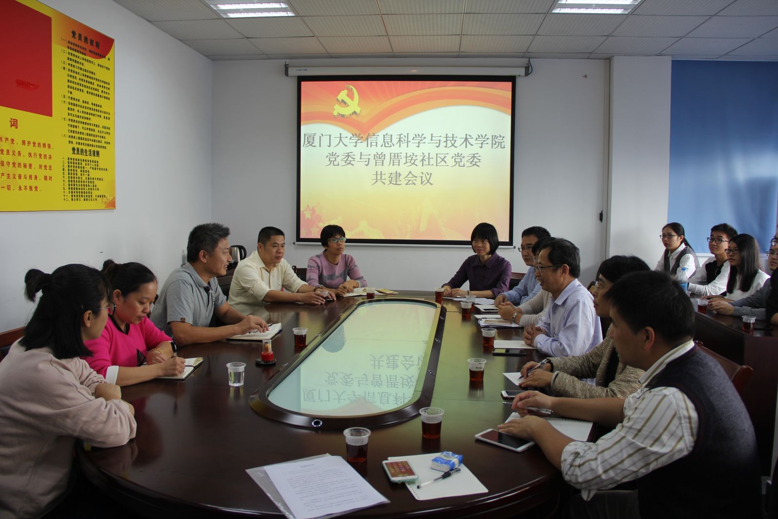 为深入贯彻落实党的十九大精神,探索创新基层党建工作,2017年11月30日,信息学院党委与曾厝垵社区党委签订共建协议书,搭建共建平台。信息学院党委书记黄鸿德、副书记李承华携通信教工支部书记汤碧玉、实验中心教工支部书记谢作生、团委副书记郑晖阁、辅导员廖炜及学生支部书记代表前往曾厝垵社区,与社区党委书记黄清杰、副书记林莉玲等商定共建事宜。