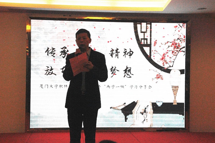 为隆重庆祝中国共产党成立95周年、长征胜利80周年,展示“两学一做”学习成果,12月17日晚,软件学院党委、团委组织各党支部、团支部举行了“传承红色精神,放飞青春梦想”经典诗歌诵读暨“两学一做”学习分享会。厦门大学关工委常务副主任黄如彬,厦门大学关工委副主任、软件学院原党委书记杨敬达,厦门大学软件学院党委书记董槐林以及软件学院部分教工党员和各年级学生代表出席了本次分享会。