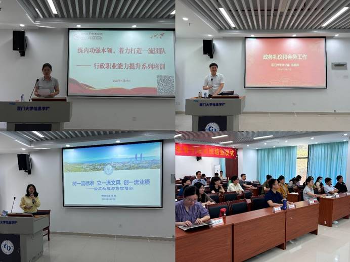 为进一步加强党政管理团队能力建设,提高工作效率和质量,5月17日,信息学院办公室组织开展能力提升系列培训,邀请学校办公室杨璐、苏毅辉为我院党政管理人员开展第一次业务培训工作。