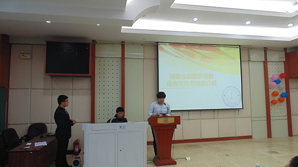 随后,信息学院楼委会代表罗明静同学对本次宿舍文化节的活动主题及内容做了具体介绍,包括心理健康讲座、文明宿舍评比、宿舍定向越野、国防生开放日和流动课堂五部分的内容。罗明静同学讲解细致,抓住各项活动的重点,并号召同学们关注相关活动的讲座和群邮,鼓励同学们积极参与。