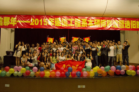 5月30日晚,由信息科学与技术学院通信工程系、信息科学与技术学院团委主办的2015届“通信那年”本硕博联谊暨送旧晚会在法学院模拟法庭隆重举行。学院老师和通信工程系本硕博三个年级的学生各展才艺,共同谱写了一场毕业盛宴。通信工程系主任唐余亮、学院党委副书记李承华、辅导员刘晓峰、通信工程系吴云峰、袁飞、刘艳华等老师以及2015届全体毕业生观看了晚会。