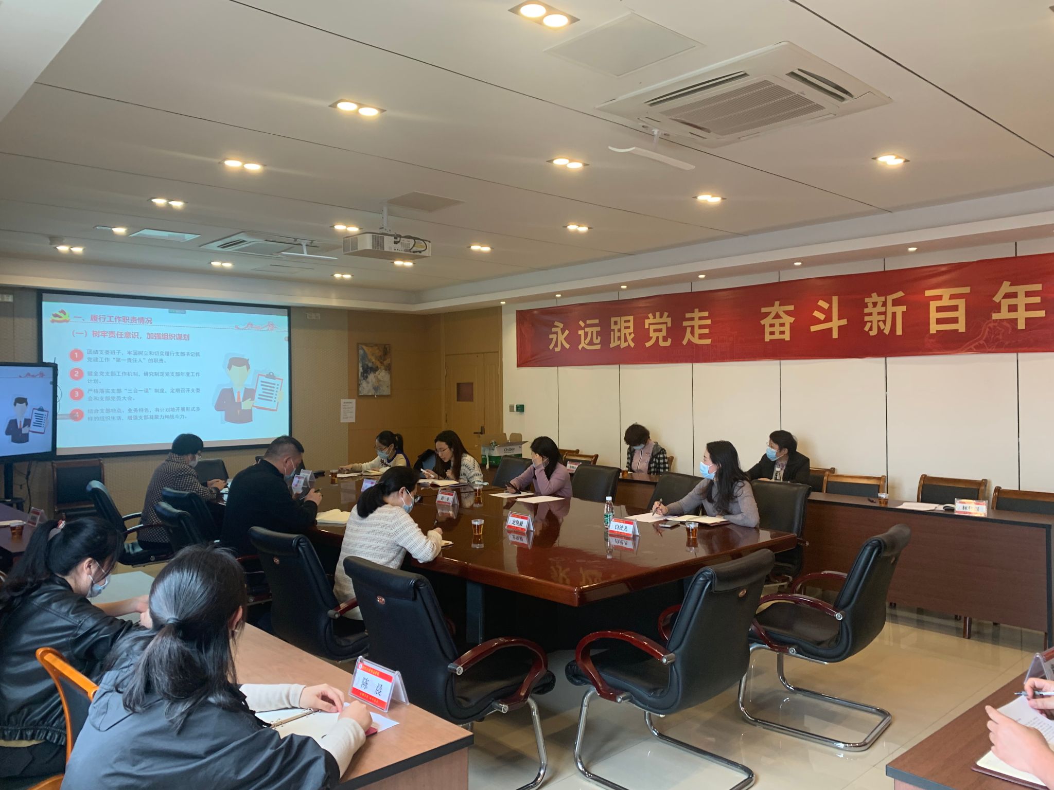 林珏同志首先代表支部委员会作支部2021年工作情况报告,总结了2021年支部在树牢责任意识,加强组织谋划;抓好思想教育,强化理论武装;坚持学做结合,推动党史学习教育成果落地见效;注重党建引领,彰显党支部在疫情防控中的战斗堡垒作用四个方面的工作,通报党支部委员会查摆问题情况,并结合支部党员谈话情况,进一步总结了工作中存在的不足和下一步改进的方向。随后,支部党员对党支部委员会的工作进行民主测评。