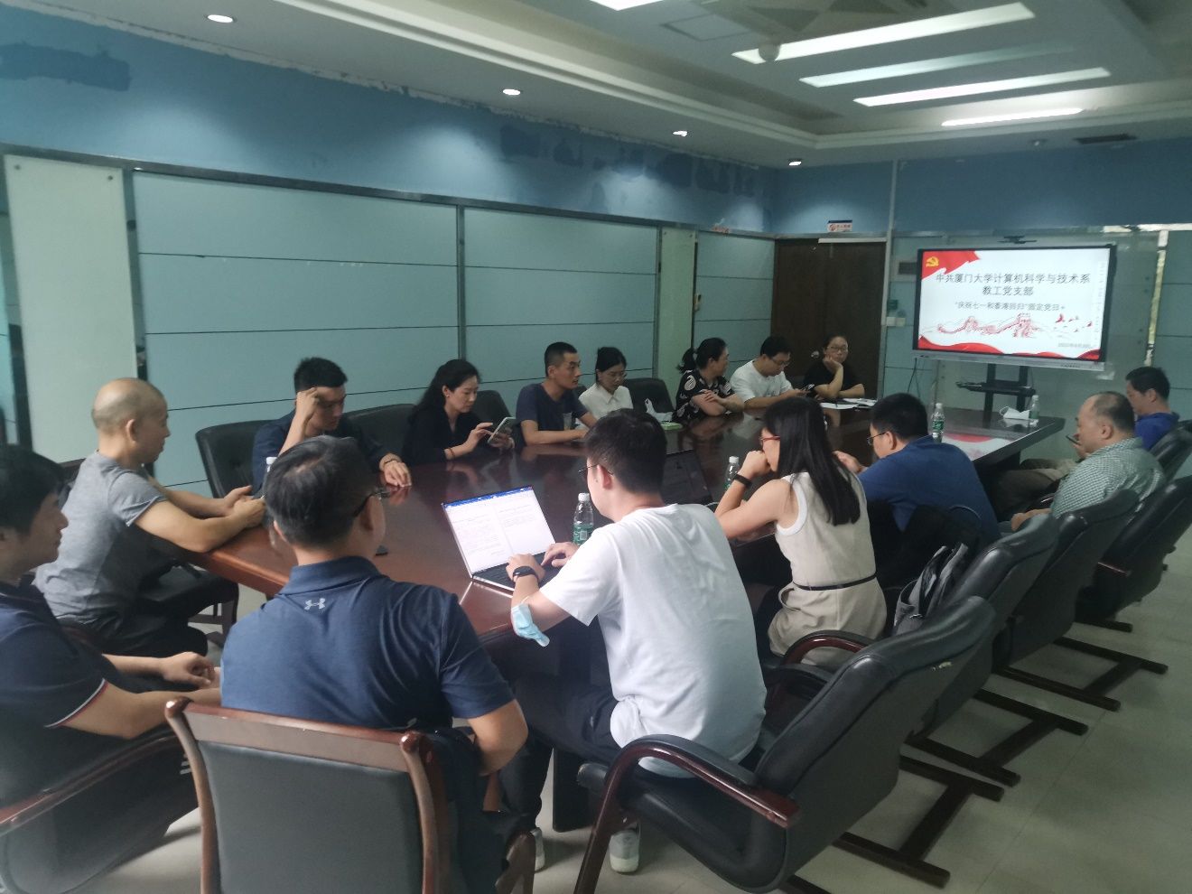 2022年6月29日下午,计算机科学与技术系教工党支部在行政楼A202开展“固定党日+”活动,集体庆祝中国共产党成立101周年和香港回归25周年。本次活动由支部委员谢怡同志主持。