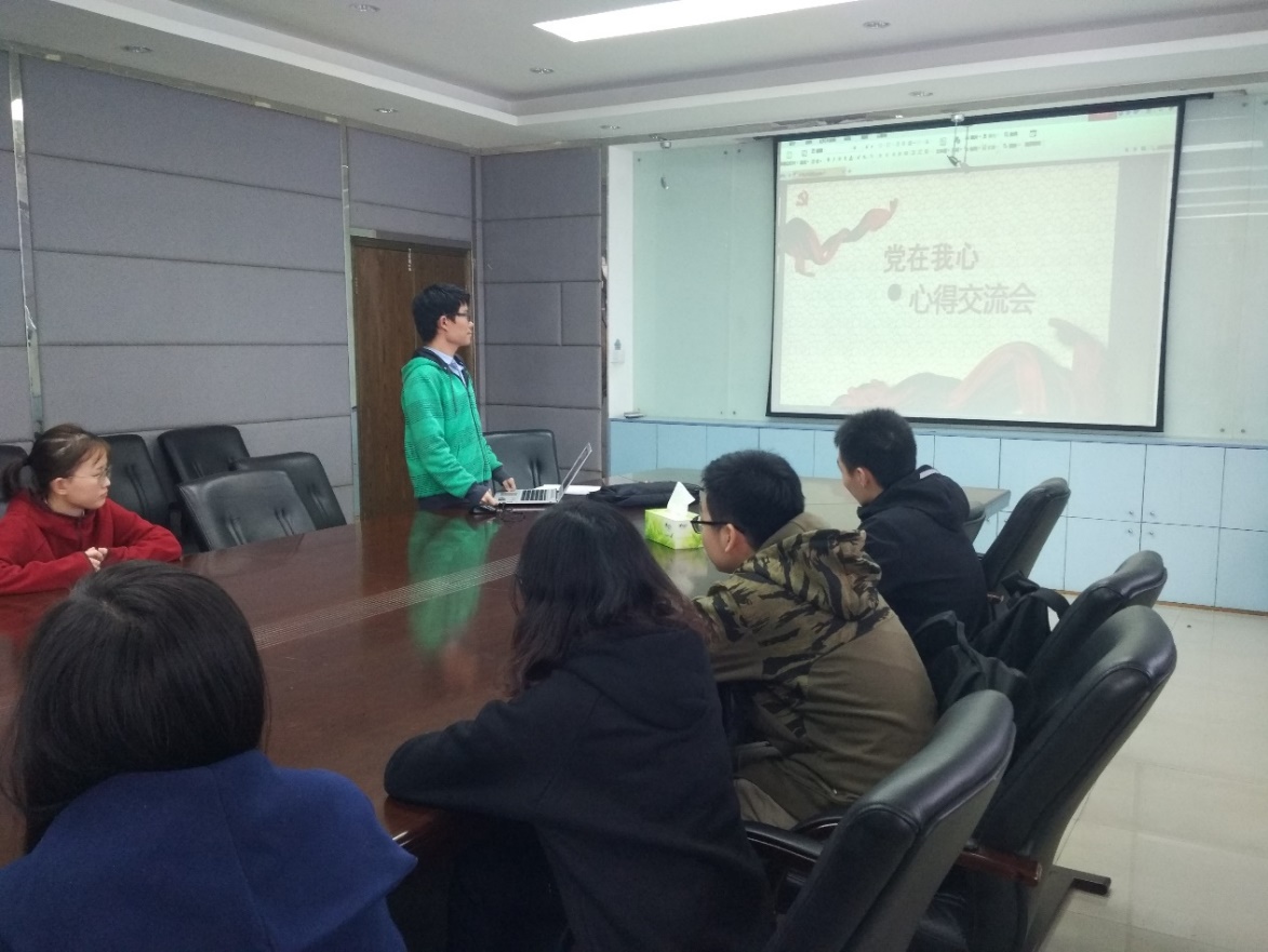 2017年12月15日中午12:30软件学院2015级本科生党支部全体党员于行政楼A306进行了以“党在我心”为主题的十九大学习交流会议,参加本次学习会的共有预备党员18人,大会由李思恒同志主持,就十九大精神与十九大报告进行交流。