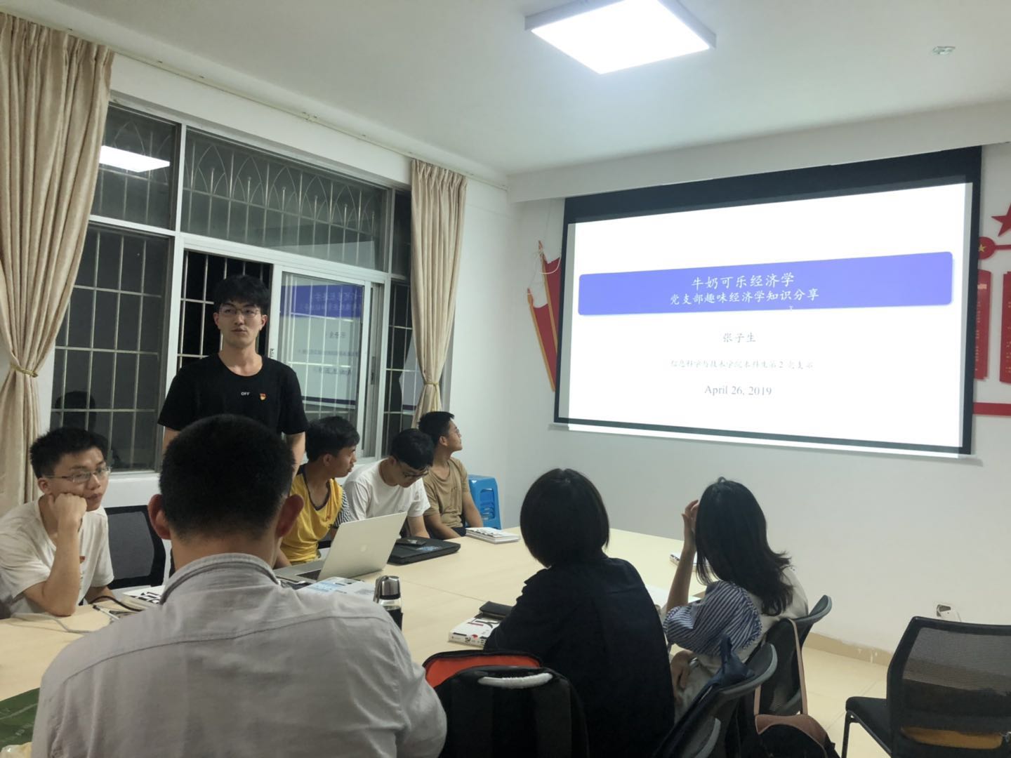 本期知识分享会上支部成员张子生和林靖渝分别以《牛奶可乐经济学》和《水上运动介绍》为主题给大家带来了生动有趣的分享。张子生同志以生活中经济现象给大家科普了经济学的一些基础知识,其中他提到“为什么鲸鱼有可能灭绝而鸡却不会”的问题时候认为与经济学上财产私有是有关系的,引起大家的讨论并与当前各地都在施行的河长制联系起来,猜测这种让河流变相“私有”,也许就是运用了经济学的原理,更好实现河流和环境的保护。林靖渝同学通过分享自己选修的皮划艇与浆板冲浪这两门水上运动课程,跟大家介绍了各类有趣的水上运动项目,过程中与会人员也会结合分享进行提问,大家听得津津有味,分享赢得阵阵掌声,还有人表示这个分享为自己的体育选修打开了大门,下次一定要尝试一下水上运动项目。