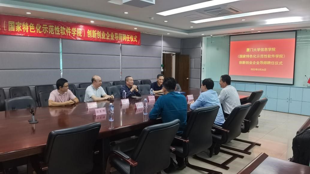 2022年5月26日14:30于海韵园行政楼A306举行了厦门大学信息学院(国家特色化示范性软件学院)创新创业企业导师聘任仪式。本次仪式由信息学院实验中心副主任赵江声高工主持,信息学院副院长廖明宏教授、软件工程系党支部书记杨律青教授以及本次校赛负责人、实验中心罗斌老师等出席了聘任仪式。