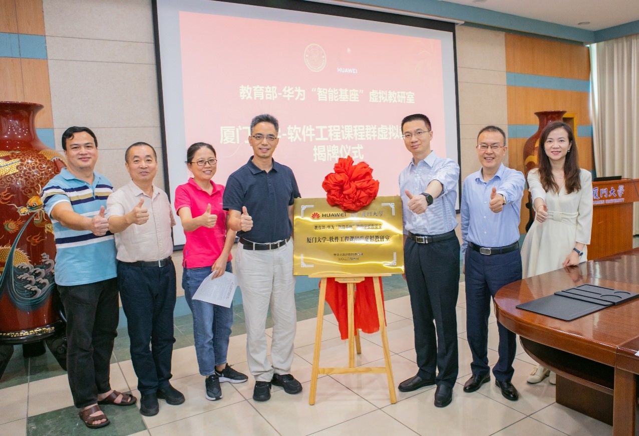 ▲周大旺、熊彦等为厦门大学教育部-华为“智能基座”虚拟教研室揭牌