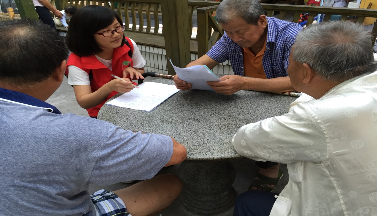 通过问卷,可以主要了解到老人们现在的生活状况,了解他们对于周边环境的评价,改进意见。志愿者们谦和有礼地耐心问答,拉近了与老人们心之间的距离。在轻松愉悦的氛围下,顺利完成了多份问卷。