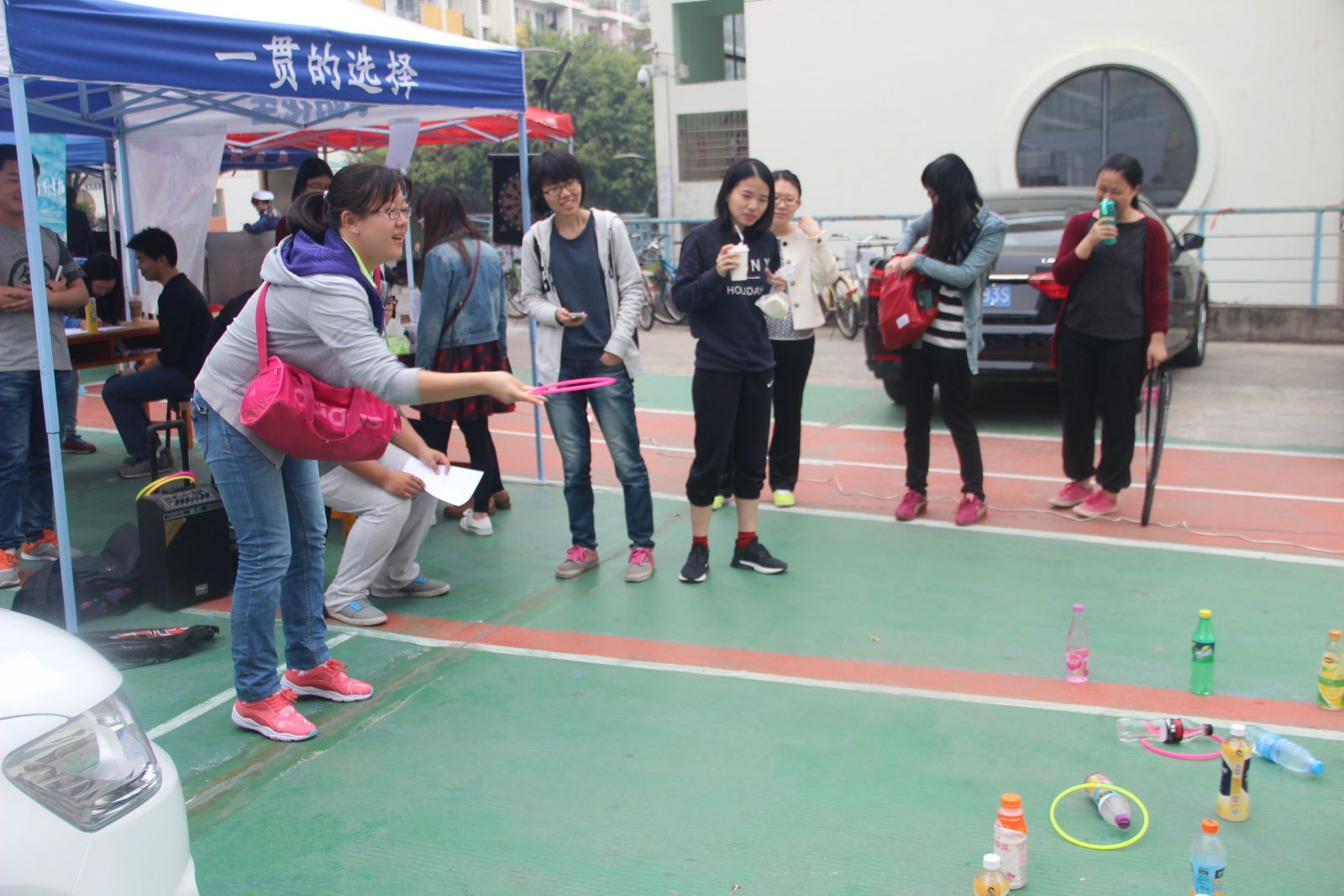 当天早上8点,生活部的部员们在场地搭建好帐篷并做好各种游戏安排。活动开始,同学们互相组队,要求每队中必须有女生成员。紧接着进行各种趣味游戏,游戏主要有知识竞赛、CP配对、拼图、扔飞镖、套圈、你划我猜、听歌识曲、你说我画等。游戏开始,两名同学组成一个小队,在这个属于女生的节日里,暂时抛开各种压力和烦恼,投入到各项小游戏中,齐心协力共同“闯关”。现场不时听到开怀的笑声,每个人的笑容与温暖的阳光一道组成最美的风景。活动最后,在许多同学的见证下,一份幸运儿的报名表从抽奖箱中被取出,本次女生节活动的大奖诞生了——张楚冰同学和李特特同学的队伍获得了一个十寸大蛋糕。于此同时,参与活动的每个人带着小礼品尽兴而归。