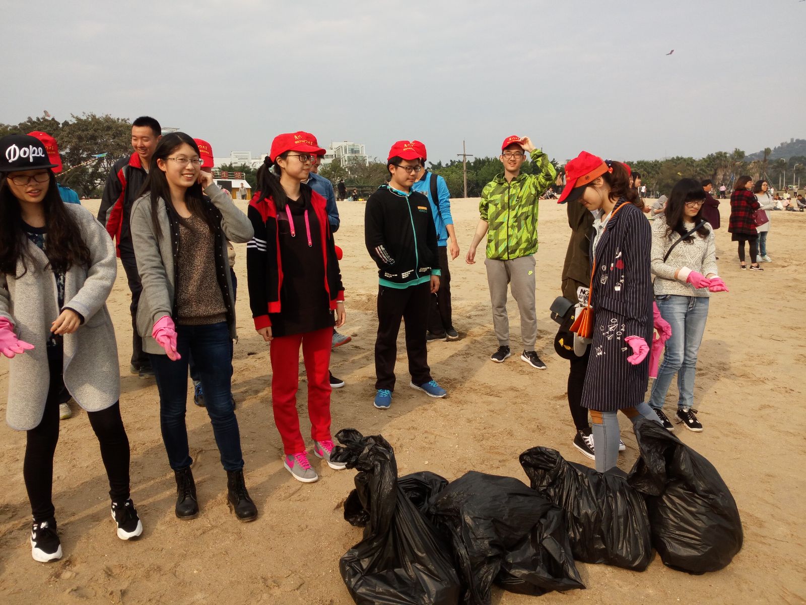 厦门大学附近珍珠湾景区垃圾堆积问题严重,为了保持景区的整洁,2015级软院本科四班的同学在3月12日在珍珠湾开展义务捡垃圾志愿活动。