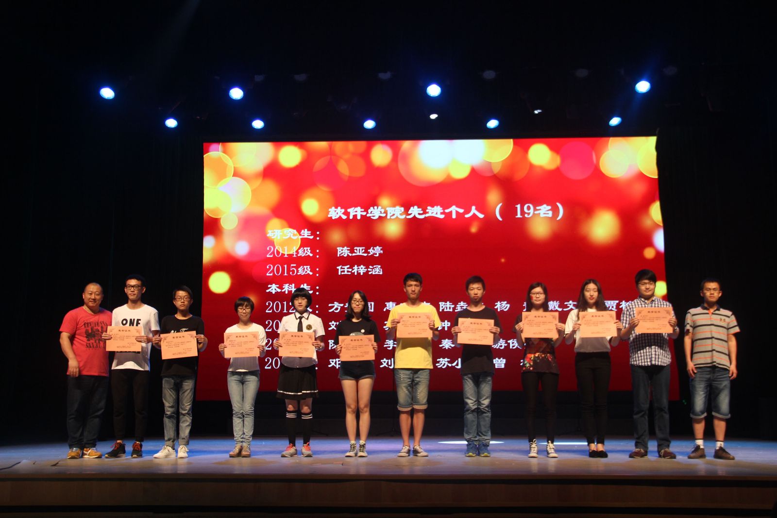 为庆祝建党95周年和五四运动97周年,5月7日晚19时,我院在建南大会堂隆重举行2016年五四合唱晚会暨年度表彰大会。软件学院党委副书记刘钟南,2012级班主任林俊聪、佘莹莹,团委书记葛学凤,团委副书记李加冕、李绍玉,辅导员刘茜,兼职辅导员许振团、史丽峰及全体本研学生参加了此次活动。