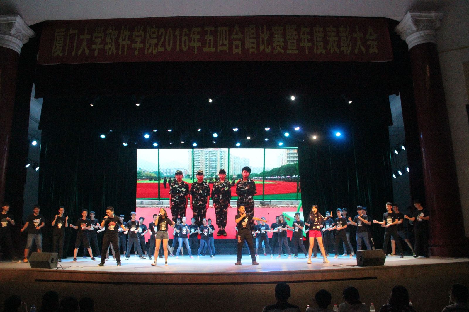 软件学院舞蹈队为师生带来了暖场表演,舞蹈《我等你》传递了军嫂们等待军人归来的荡气回肠的情感,博得满堂欢呼。他们即将代表学院参加下周举办的厦门大学2016年舞蹈节。随后合唱比赛正式开始,各班级争相斗艳,展示自我。无论是《旗开得胜》的激情洋溢,还是《爱因为在心间》的深情款款,无论是光影情景表演的创意十足,还是二胡、葫芦丝、钢琴演奏的才情横溢,都展示出我院学子青春与才华,更表现出班级的努力,团结和友爱。大三的同学带来令人眼前一亮的歌舞串烧,迷人的舞姿伴着动感的旋律表达出他们对软院对厦大的依恋与热爱,引来场下阵阵喝彩;大四的同学带来《那些年》和《凤凰花开的路口》等歌曲合唱,用细腻的歌声传达出对厦大母校的依依不舍。当熟悉旋律“那天海韵满天星星,流星划破公寓天际”响起时,同学们的眼角都泛着泪花。表演结束时,来自台下 “学长学姐们常回家看看”的深情呼喊是学弟学妹们内心殷切写照。研究生带来的一曲《明天会更好》让同学们看到了除了科研,他们也有多才多艺的一面。李绍玉老师最后给大家带来了诗朗诵《琵琶行》,声情并茂的朗诵将晚会气氛推向高潮。
