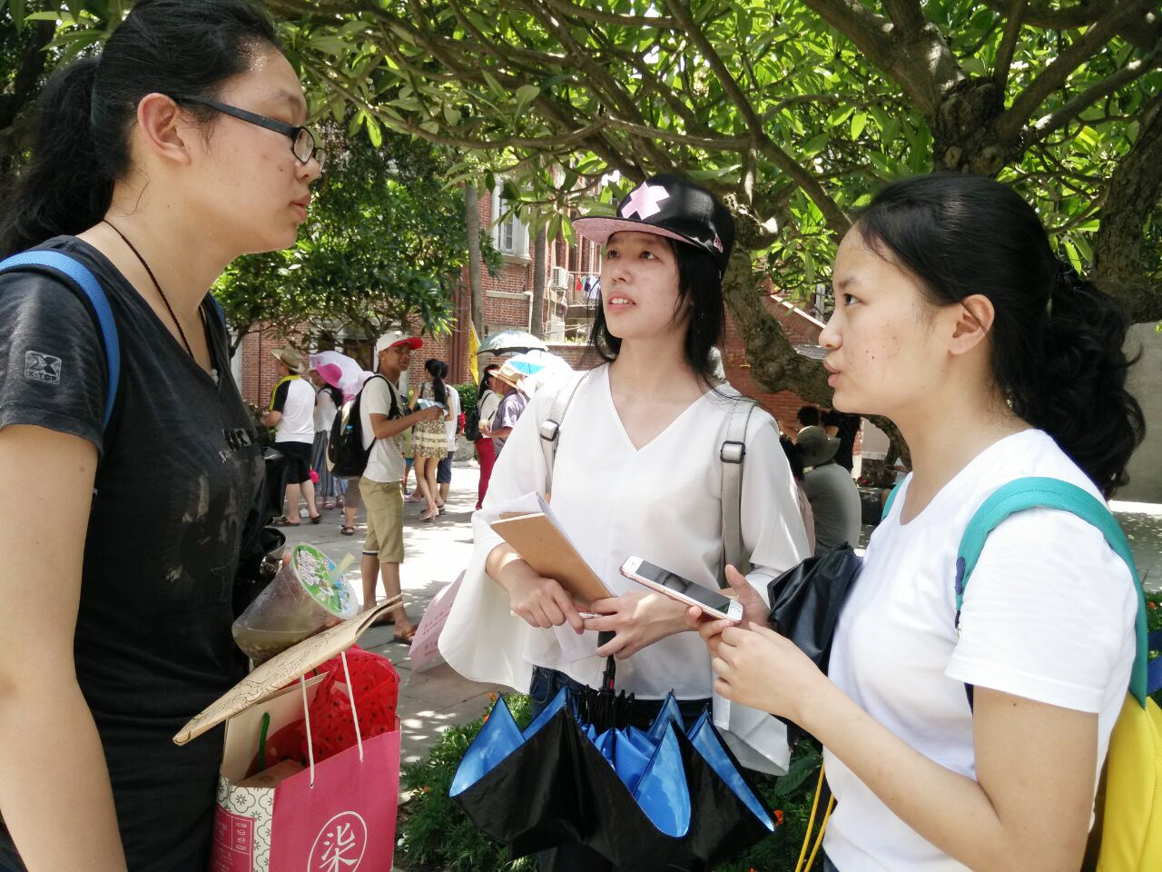 随后,组员们将目光转向鼓浪屿上的游客。当问及游客受鼓浪屿吸引的原因时,统一的回答不出所料是其日趋火爆的知名度,而欠缺对闽南文化的了解。沿海经济的发达与旅游业相互促进,推动发展,以至于鼓浪屿当今浓重的商业气息与游客先前的想象大相径庭,有所期待,有所失望。也正因如此,大多数游客表示支持鼓浪屿申遗的选择,希望往日的世外桃源能逐步回归质朴。