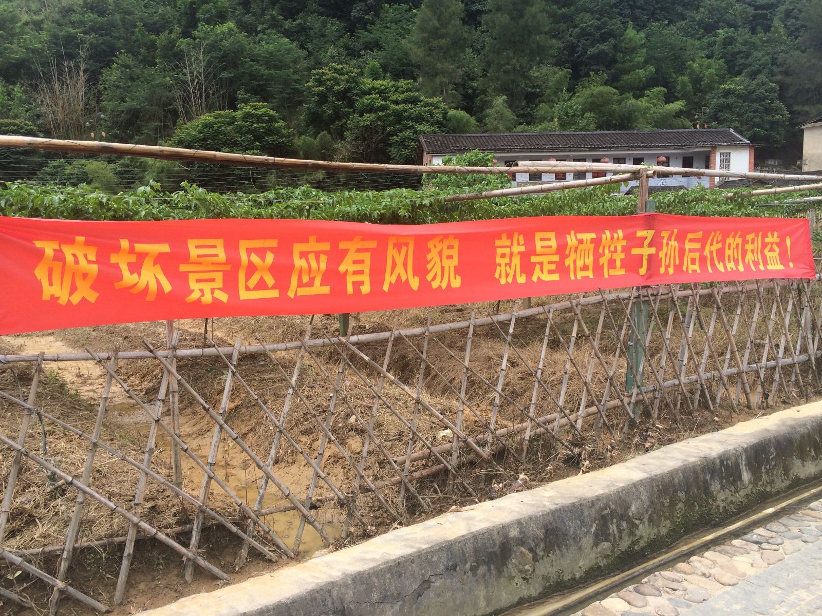 走在云水谣古道,我们一行人感受到的就是安定,是一种与我们生活的地方截然不同的慢节奏的休闲,那种柔和与静谧将一切脑海中之前浮现的旅游销售场面火爆的景象完全击破。这里就是云水谣,就是那个安静祥和带给内心无限温柔的云水谣。旅游业的引入更多的是为他做了一些点缀,一种静中有动的点缀,这点当地居民比我们更清楚,他们自己也挂出了横幅。