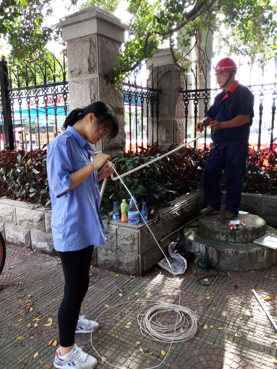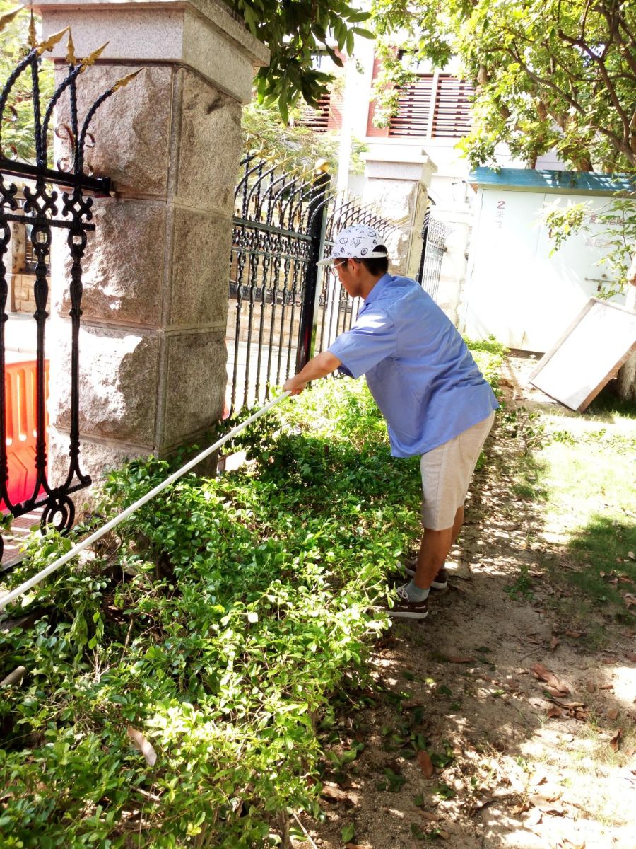 在海滨食堂,实践队员们在后厨帮厨,在前台打饭菜、收碗筷;在西村、大南校门,他们和学校安防队员一道,顶着35度的高温,刷验身份证,检查进门证件,维持校门口秩序;在学校水电中心,他们协助接听报修电话,跟着师傅外出检修;在绿化保洁部门,他们跟随师傅们,天刚蒙蒙亮就深入学校各个角落清扫道路,头顶烈日除草浇水、施肥护苗;在物业公司,他们跟着部门经理展开各类检查工作。