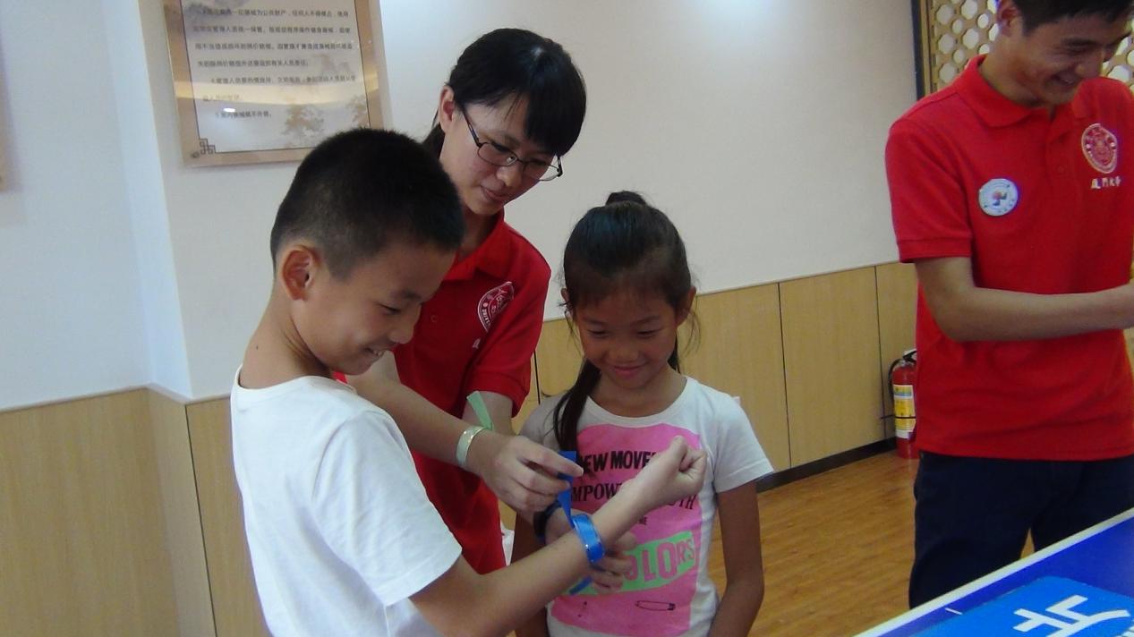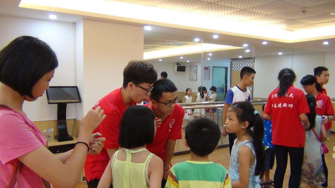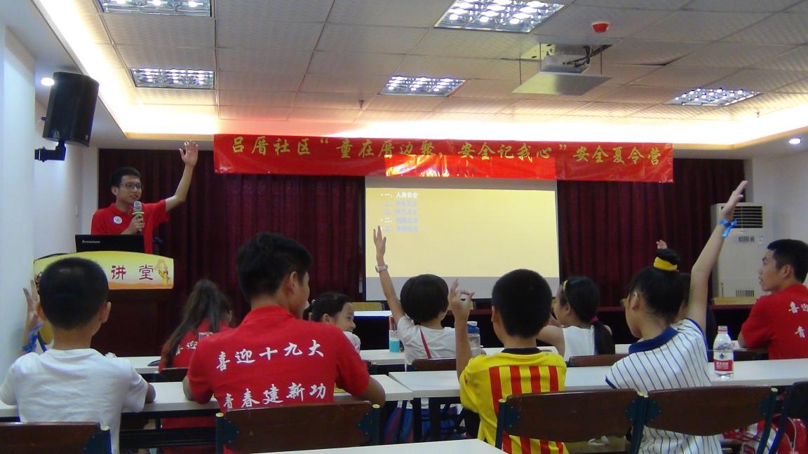 7月10日下午两点,队员们提前到达活动场地,在队长对本次夏令营活动再次做出简短培训和安排后,队员们分成六个小队,担任各个小队的领队。两点半后,社区小朋友们在家长的陪伴下陆陆续续来到了多功能活动厅,略显拘谨的脸上还是掩藏不住小朋友们的兴奋与好奇。为了尽快打消小朋友们的紧张和陌生感,身为各个小队领队的大哥哥大姐姐们热情地接待了自己队内的小朋友,关切地与他们聊天,并为他们在手腕上系上了代表各队的不同颜色的丝带,让他们迅速找到了归属感。下午3时,“童在厝边聚,安全心中记”关爱社区流动儿童安全知识夏令营的开营仪式正式举行,为期三天的安全知识夏令营活动也由此拉开了序幕。