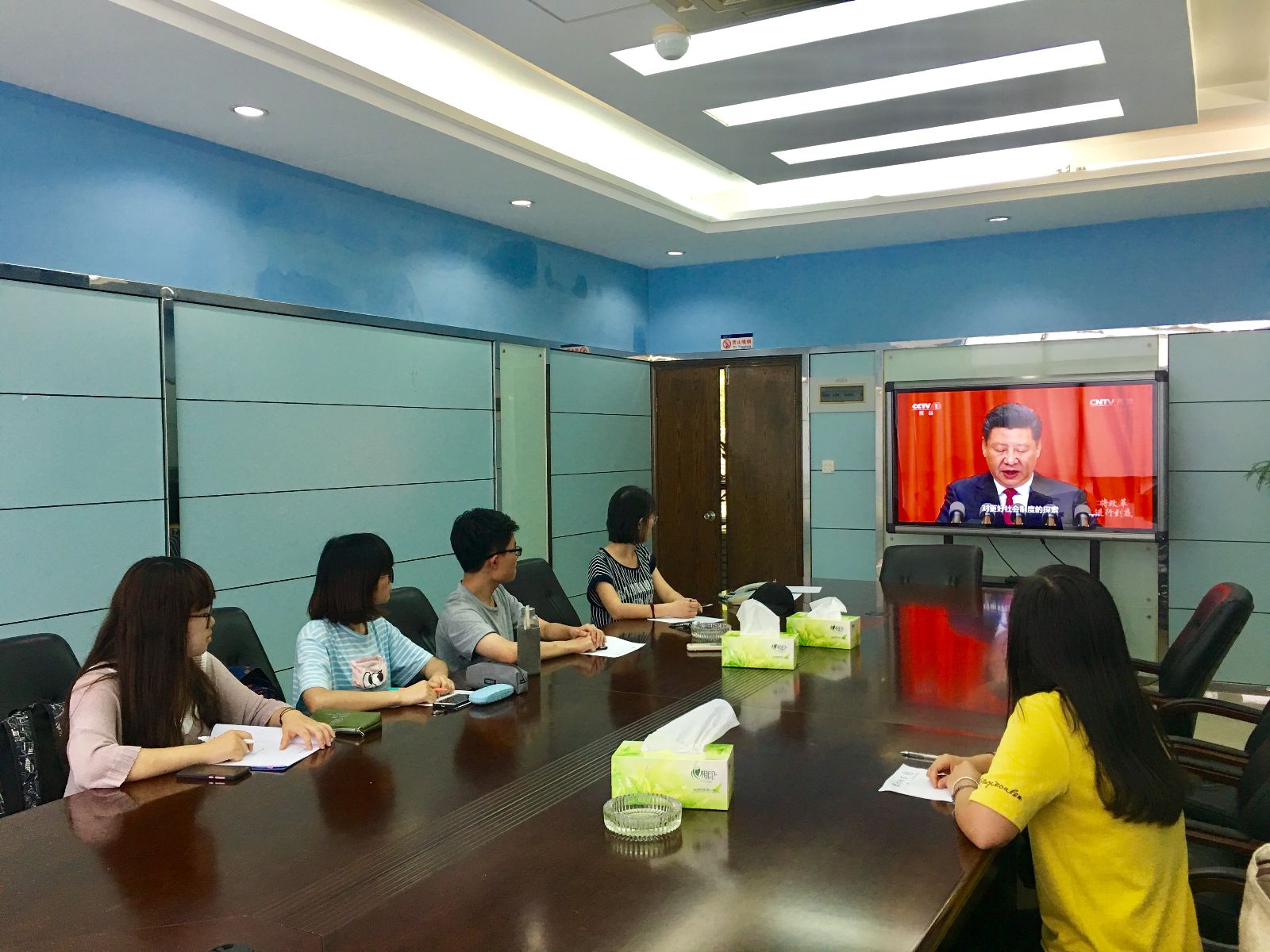2017年7月20日中午,软件学院2015、2016级本科生党支部在行政楼205集中组织观看了大型政论专题片《将改革进行到底》第三集《人民民主新境界》。