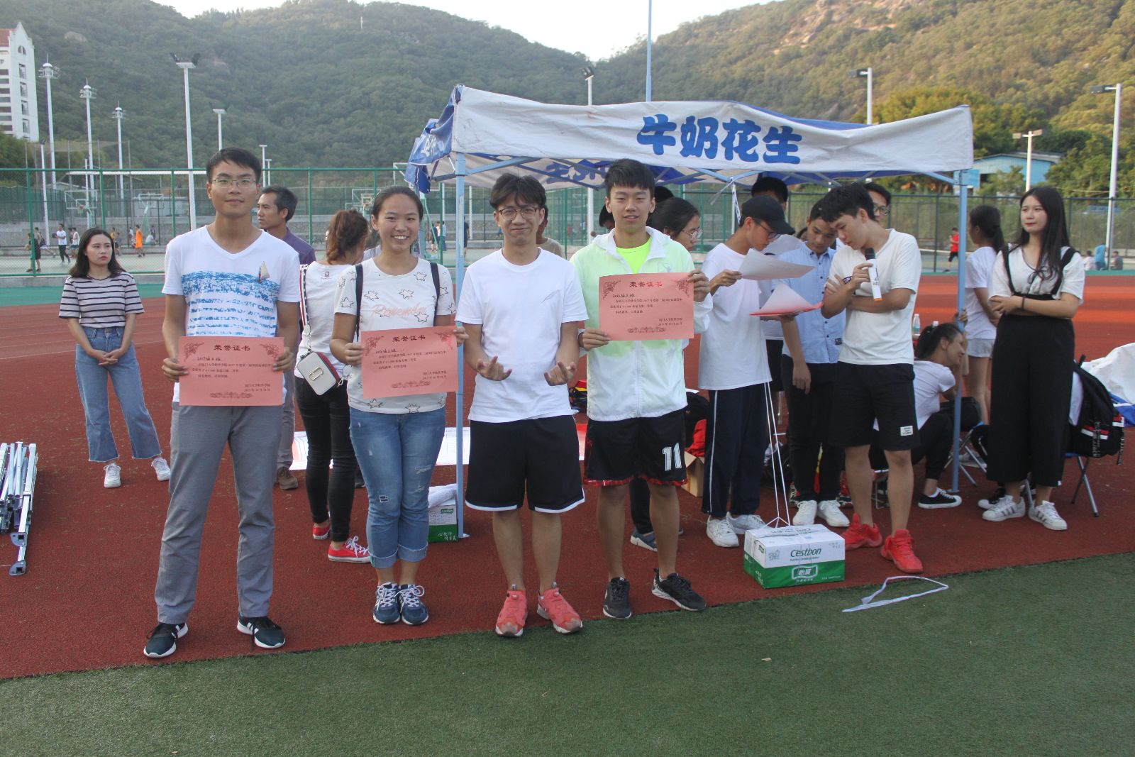 经过中午简单的休整,剩余比赛项目在下午如期继续。袋鼠跳,15×60米接力赛在同学们的欢笑与鼓舞中顺利进行。大一四班,研究生,大二三班,分获总分一二三名;Check IT,大二三班,大一三班,分获精神文明奖。下午4点半,院运会圆满结束。