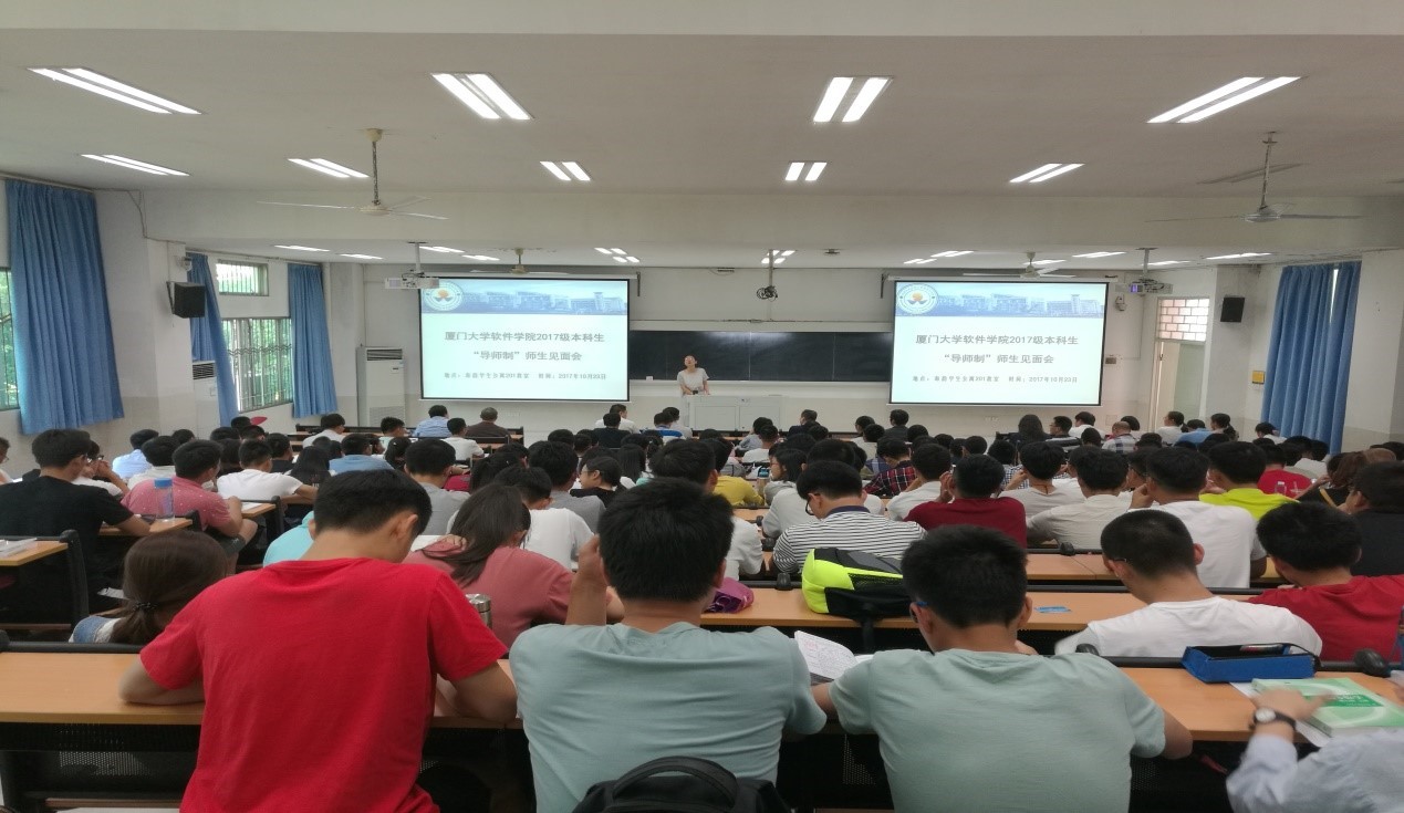 10月23日下午,厦门大学软件学院2017级本科生导师制师生见面会在海韵学生公寓201教室举行。软件学院院长廖明宏、副院长王备战、林坤辉、党委副书记刘钟南、史亮等老师以及2017级本科生在校导师出席了见面会。仪式由刘钟南副书记主持。