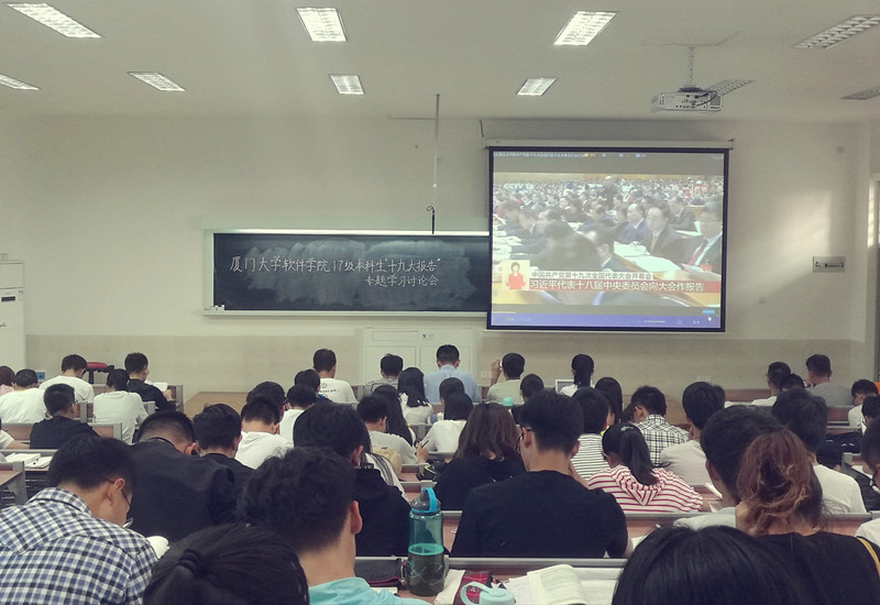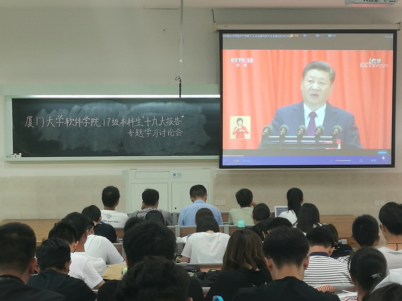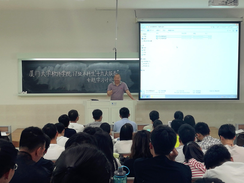 10月23日下午,软件学院2017级本科生在辅导员李绍玉老师的组织下在海韵学生公寓406教室集中学习“中共十九大”报告,并组织学习心得交流。