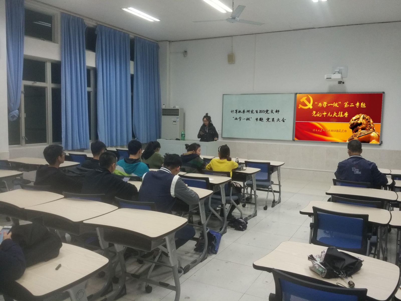 2017年11月20日晚7点,计算机系研究生2015党支部在厦大学生公寓教学楼202教室开展了以“贯彻十九大”为主题的“两学一做”专题学习党员大会。