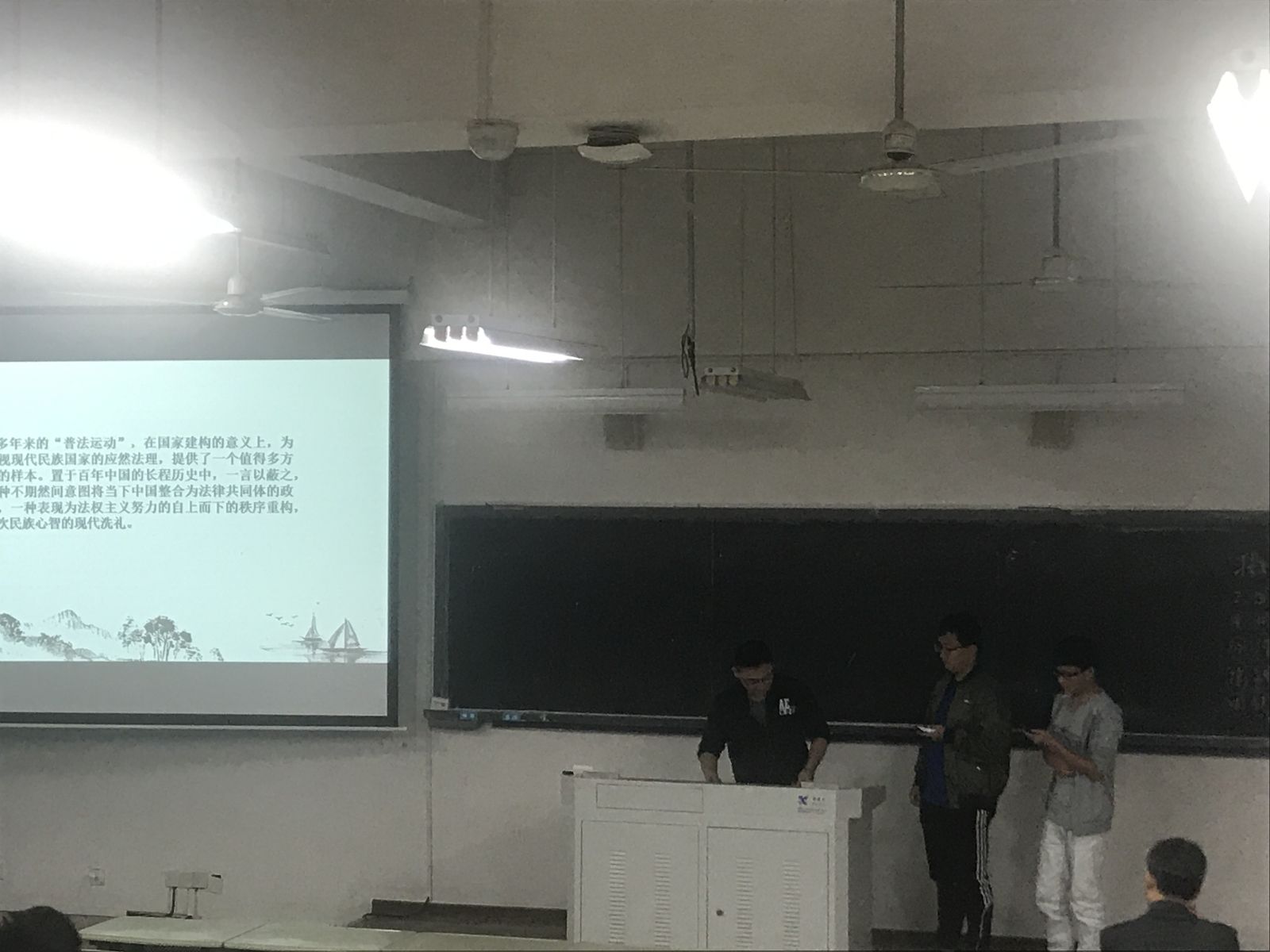 12月4日是国家宪法日,为开展普法主题活动,全面落实宪法的威严性,软件学院2015级本科生全体同学于当天下午五点在海韵教学楼104教室开展了普法主题活动。俗话说,“没有规矩,不成方圆”。法律作为约束人们行为的规范,是巩固政权,维护社会秩序的必要手段,而在宪法日这个特殊的日子里,2015级本科三班响应学院的号召,在全班同学范围中开展了积极的学习与响应,并向年级全体同学展示和分享学习成果,辅导员李加冕参加了学习。