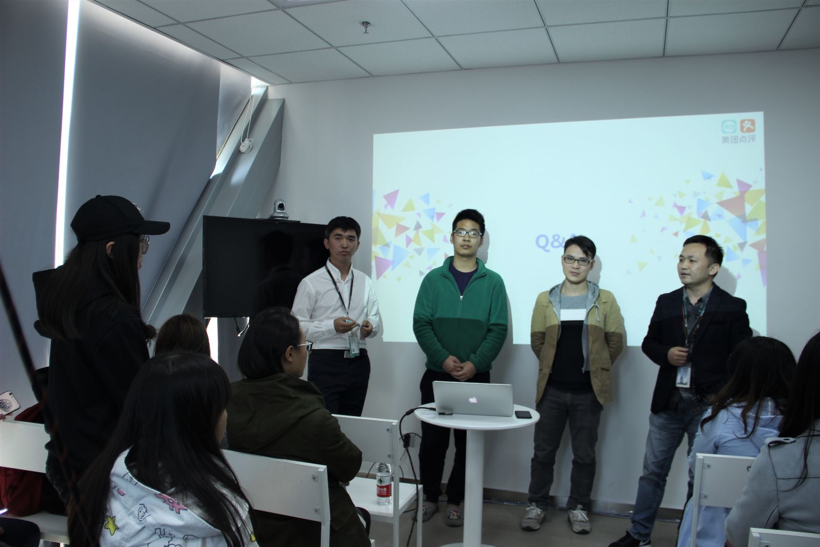 下午两点半,同学们到达公司后,负责人热心接待了大家。他首先带同学们参观了程序员们的工作环境,接着将同学们带入整洁干净的会议室。主讲人王鹤经理首先作了简短的自我介绍,之后从多个方面介绍了美团公司近几年的发展情况,并向同学们认真诠释了美团公司的企业文化——“以客户为中心”“正直诚信”“合作共赢”“追求卓越”。在现场提问环节中,同学们踊跃提问,王经理耐心回答了有关校招、实习、招聘需求、考核标准等同学们切实关心的问题。而正在美团公司实习的大四学长和已经工作的学长也悉心与同学们分享经验,解答了关于大学规划的问题,提倡同学们积极加入导师项目,并且鼓励同学们沉下心来,找准自己的人生方向。