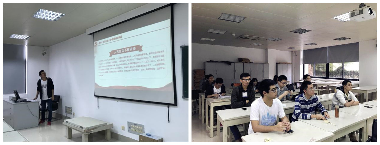 12月13日下午3:30,软件学院2015级研究生团支部在科研一106教室组织开展主题为“学报告,话成长”的十九大报告心得交流会和十九大知识竞答活动。