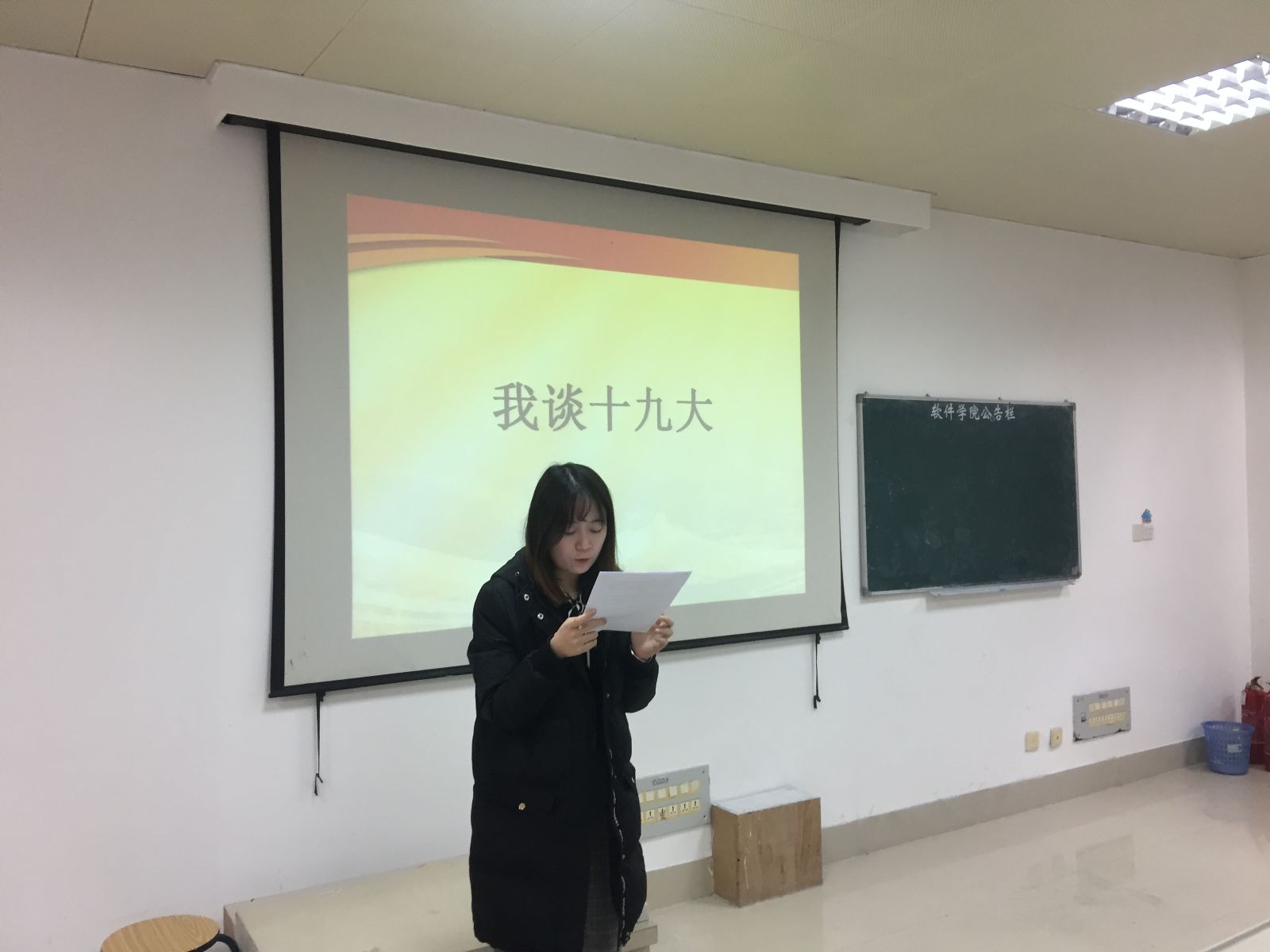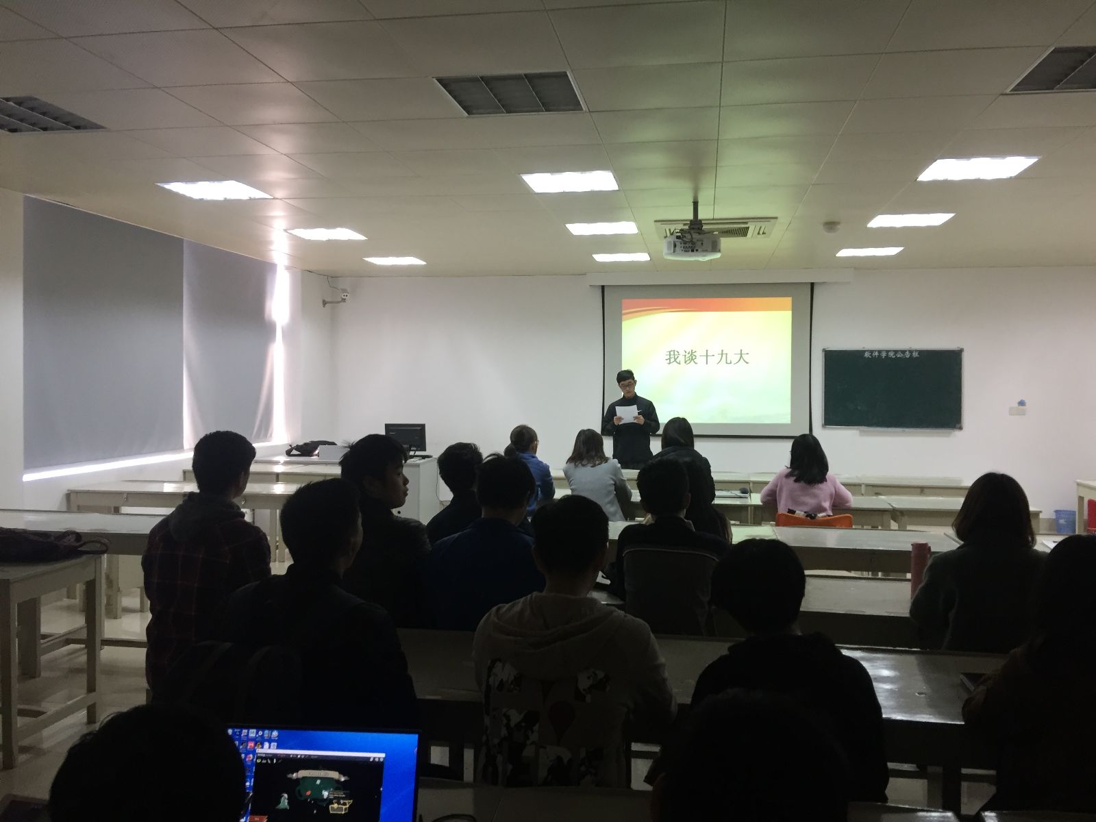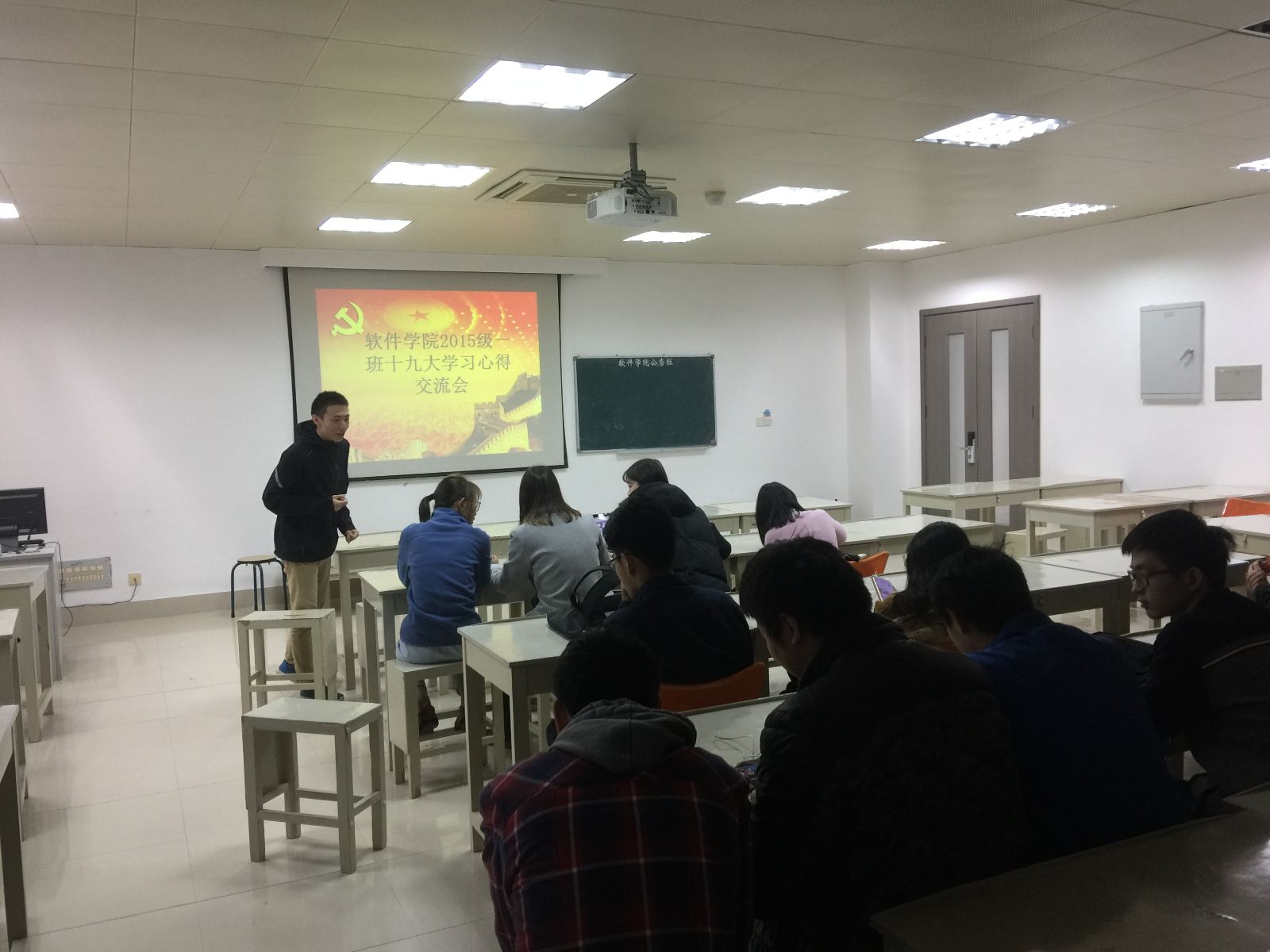 2017年12月8日中午12:30,软件学院2015级本科1班在科研楼106开展十九大学习心得交流会。