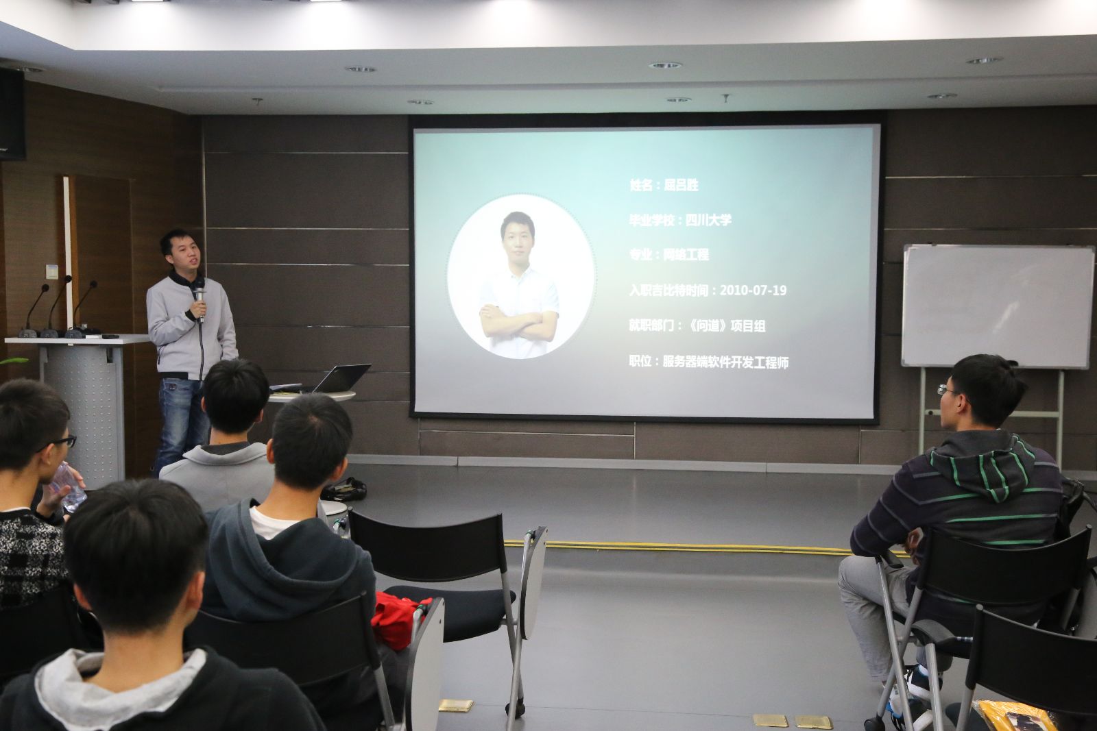 接下来,服务器端软件开发工程师屈吕胜先生为同学们做了经验交流与分享,并向同学们提出了一些建议,大家受益匪浅。最后,同学们纷纷向屈先生提出问题,屈先生都耐心解答并给出了让同学们满意的答案。