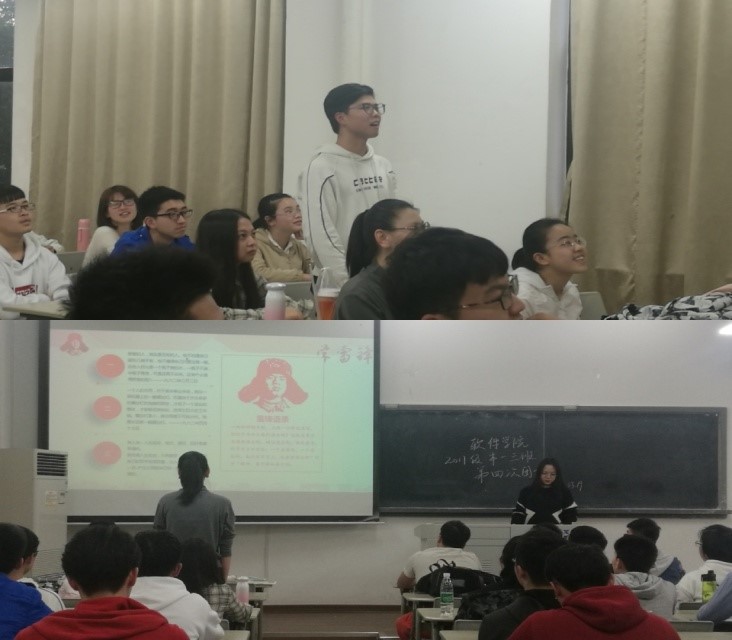下午4点40,同学们于海韵教学楼304教室集合。首先,在团支书肖品彤的介绍下,大家一同了解了本次班会的主要流程和展开雷锋精神学习活动的重大意义。随后,同学们观看了有关雷锋精神的视频。视频讲述了雷锋助人为乐的光荣事迹与雷锋精神的深刻内涵,同学们观后十分振奋,精神备受鼓舞。