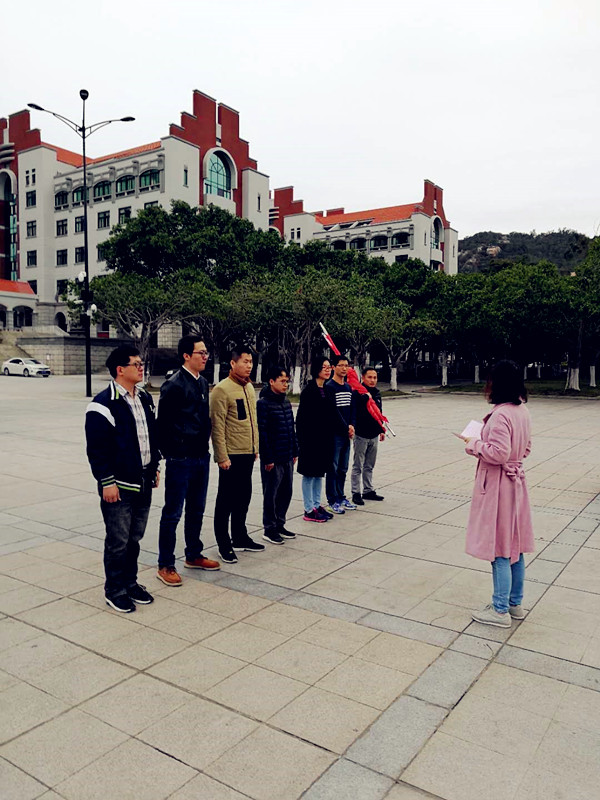 “校外人员一眼就能看到厦大内的国旗,是因为我们呢!” 2016级本科生党支部成员谢停停看到五星红旗高高飘扬在天空时,内心充满了骄傲。支部成员任天翔觉得,每天负责升旗和降旗,不管是在台上升旗还是在台下注目,都是一件极具责任感,使命感和自豪感的事情。旗帜在朝阳中缓缓上升,一天的学习工作和美好生活也迎着清晨的第一缕阳光开始,这是一件多么令人幸福和欢快的事。每一次与国旗的触碰,同学们心中的庄严肃穆也油然而生,他们在不断提醒自己的党员身份的同时,也时刻以一名合格党员的要求规范自身,全身心投入一天的工作学习。