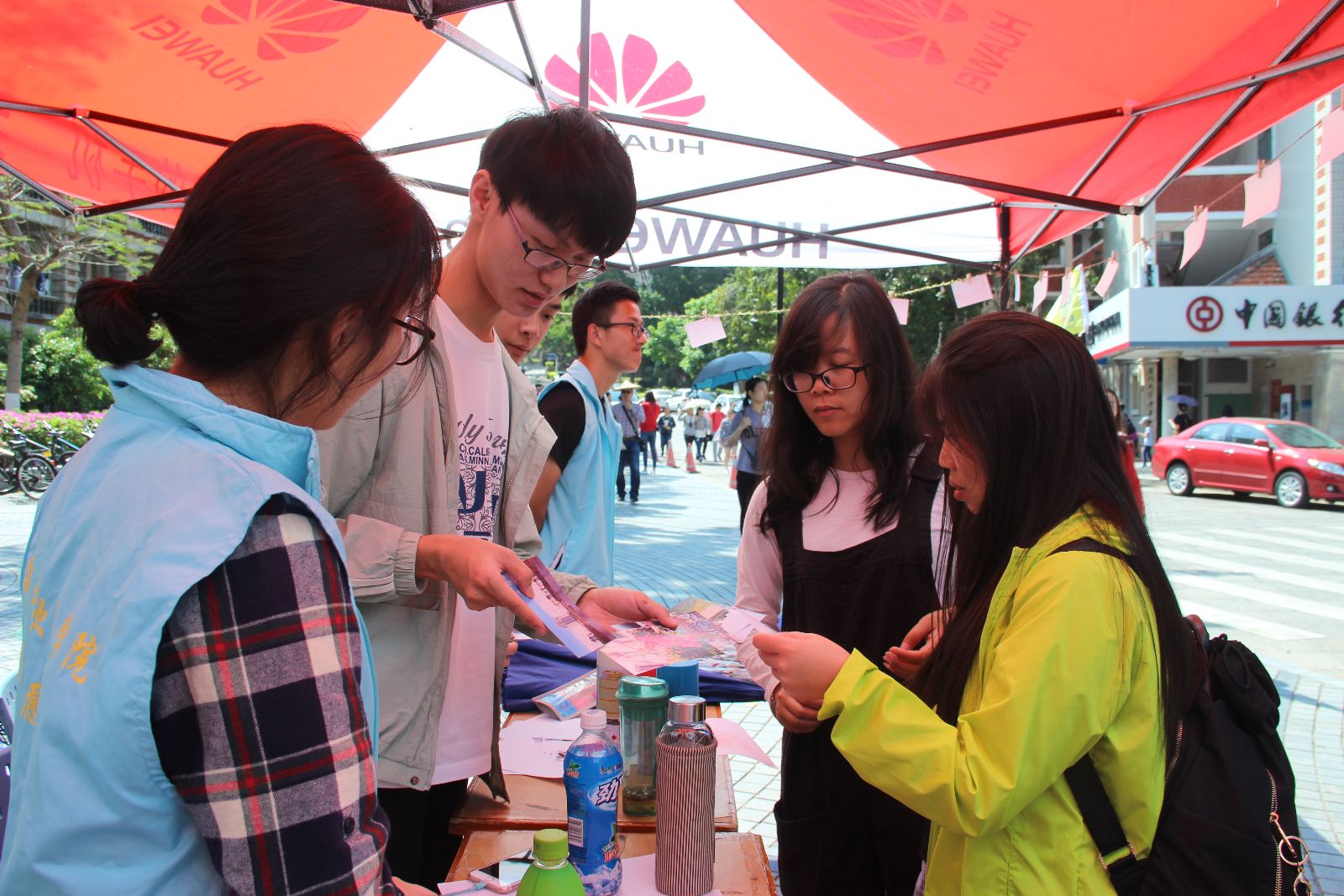 活动开始前,青协负责的同学早已布置好了场地,志愿者积极向路过的师生和游客宣传活动理念:捐出自己富余的雨伞,献出一片爱心。捐出的爱心雨伞将被放置在教学楼,帮助下雨时却忘记带伞的同学。活动过程中,越来越多的人被活动现场的活跃气氛吸引,主动向志愿者了解活动详情,许多有富余雨伞的游客纷纷过来参加。捐赠的游客和师生可以将爱心等多种图案喷绘在雨伞上,并获得青协准备的精美小礼品。其中,有两个来游玩的女生非常积极,不仅热情的参加活动,还主动与志愿者拍照留念。她们的行为也鼓舞了更多人,大家无私奉献的身影给美丽的校园再添一道亮丽的风景线。活动结束后,我院青协共募捐到20余把雨伞,这些雨伞将修理和归整后由志愿者放置于教学楼,并由青协同学统一管理。
