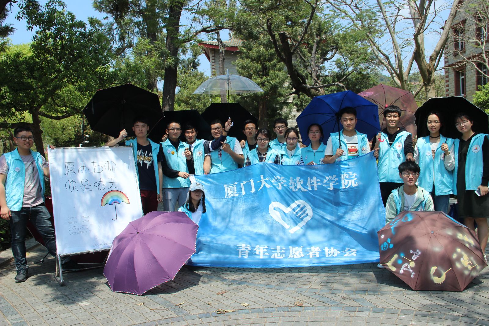 3月31日上午八点半,由软件学院青协主办的“厦雨有你,便是晴天”——爱心雨伞募捐活动,于本部芙蓉四前小广场成功开展。