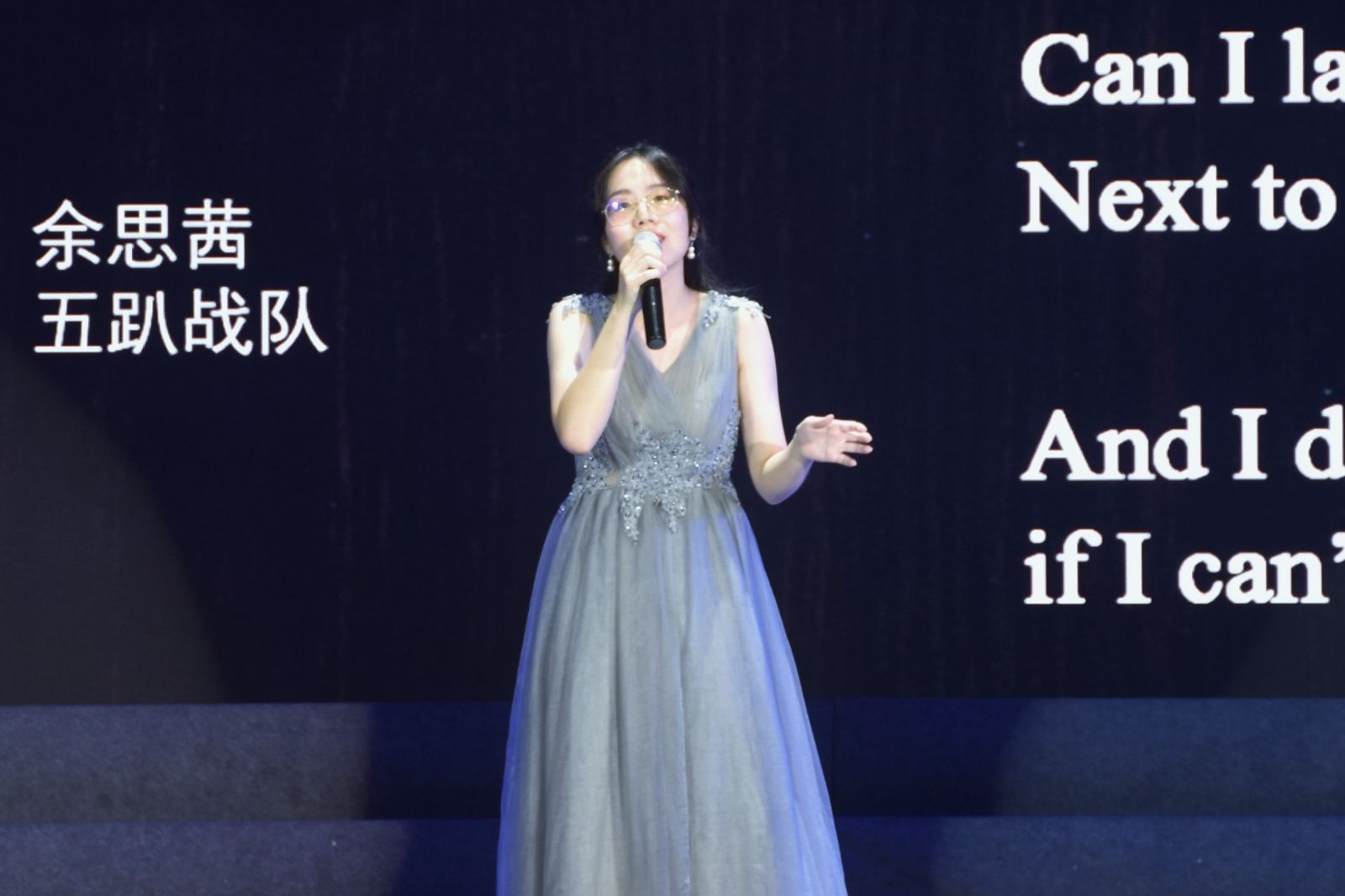 本次比赛采用了战队比拼的赛制。各战队带来的或热情、或温婉的歌曲点燃了全场的气氛。在第一轮中,我院的余思茜带来一首《Lay Me Down》,她用温柔的嗓音缓缓诉说着歌中的故事,用深情的演唱征服了观众和评委。朱梓杰演唱的歌曲《问》,她动听的嗓音配上优美的旋律融化了在座的每一人的心,引起阵阵欢呼。张帆声线极富磁性,一首抒情英语歌《Perfect》令人沉醉。朱梓杰和余思茜晋级第二轮,而张帆以一分之差止步首轮。