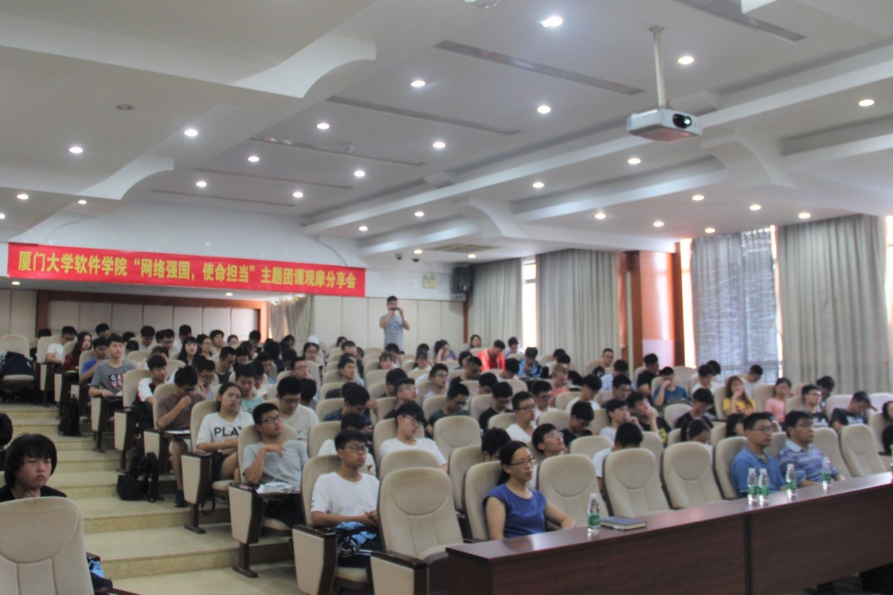 5月21日,厦门大学软件学院“网络强国,使命担当”团课观摩分享会在海韵504会议室顺利举办。学院党委副书记史亮、数字媒体工程系教授吴清强、团委书记葛学凤、副书记李绍玉、辅导员刘茜、2014级本科生谢华宇与全体2017级本科生一起出席了分享会。
