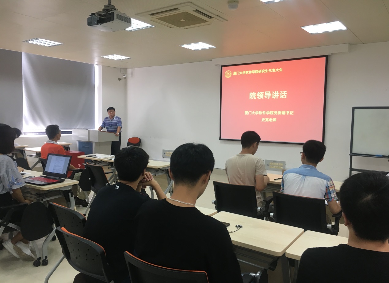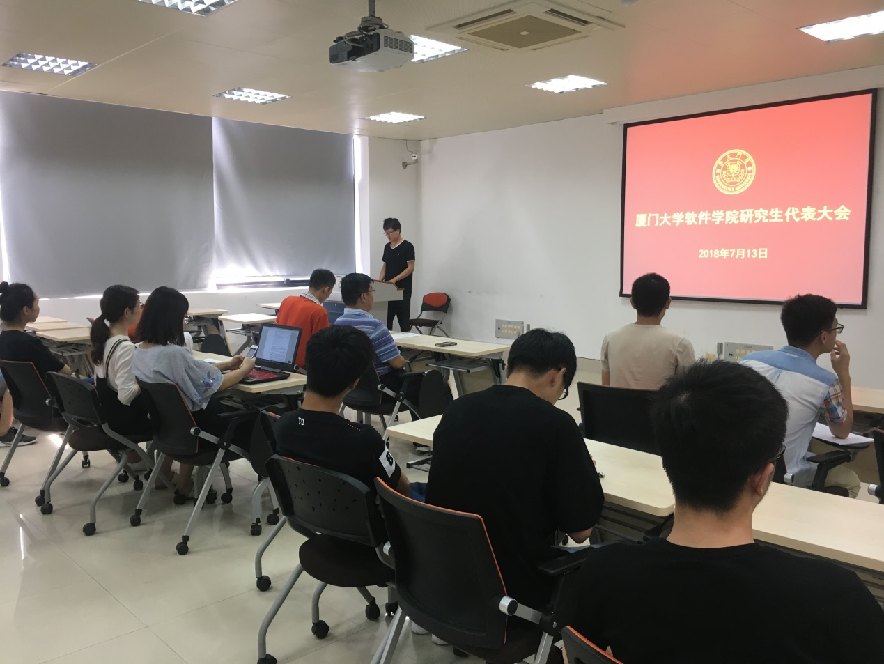 7月13日下午,软件学院研究生代表大会在海韵园科研一106召开,软件学院党委副书记史亮,学院团委副书记李加冕以及研究生代表出席此次研究生代表大会。