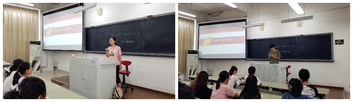 经过长达20分钟的组织学习, 同学们收获颇丰。为共享小组学习成果,深化学习团十八大精神,团支书董怡帆组织各学习小组派代表上台分享总结。