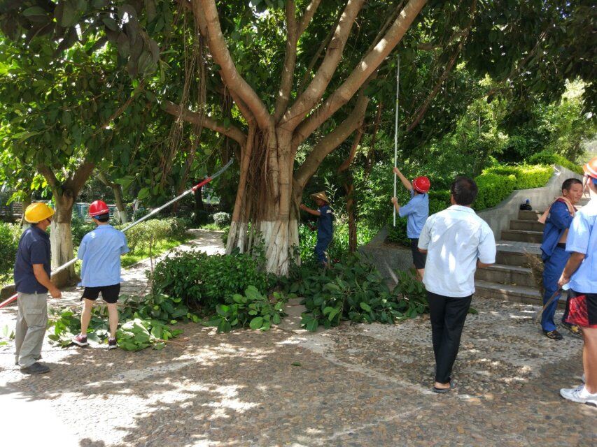 绿化保洁岗的队员们穿上工作服,戴上草帽,在学校的花圃、校园各个角落养护绿植和维护环境卫生。天还没亮,他们就开始清扫街道;烈日炎炎,他们和师傅们一起除草浇水,施肥护苗。。。可当同学们连连喊累的时候,才发现巨大的工作量并没让师傅们有一丝懈怠,他们坚守在岗位上,默默付出。夜深人静或是晨光细微的时候,同学们沉浸在美妙的梦乡,而校园的变化就这样悄无声息的发生着。一位实践队员说:“到了工作岗位,我们开始了清洁道路的工作。一个人,一把大大的扫帚,一条长长的街道,成百上千次的挥舞,才短短半个小时,我就已经已胳膊发酸,满头大汗了。可是师傅们几乎要一整天这样工作,太佩服他们的毅力了。以后再也不能乱扔垃圾了。”
