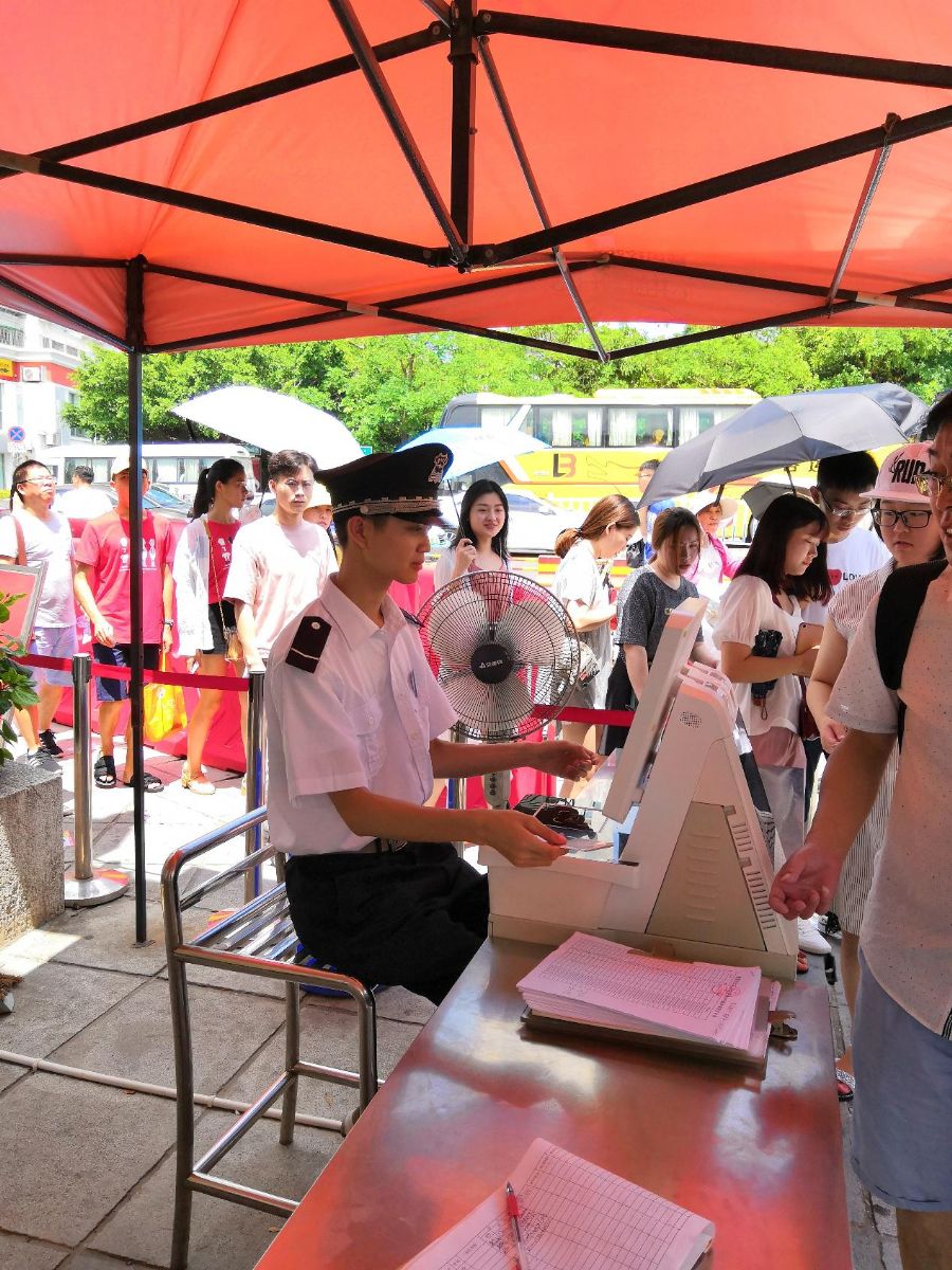 校门岗位的队员们负责在学校西村、大南校门体验门卫工作。他们主要的工作是为游客刷身份证,检查进门的证件,维持校门口的秩序,引导游客排队入校。炎炎夏日,即使有遮阳棚,不到一个小时,汗水已经打湿了学校安保工作人员和队员们的衣衫。队员们这样说:“校门岗位一职,让我消除了对保安叔叔的误解,与他们的接触沟通交流了解到了很多与学业上面无关的知识,让自己深有感触。不同职业有着不同的使命,身为学生我们都应该去积极地配合他们的工作。”