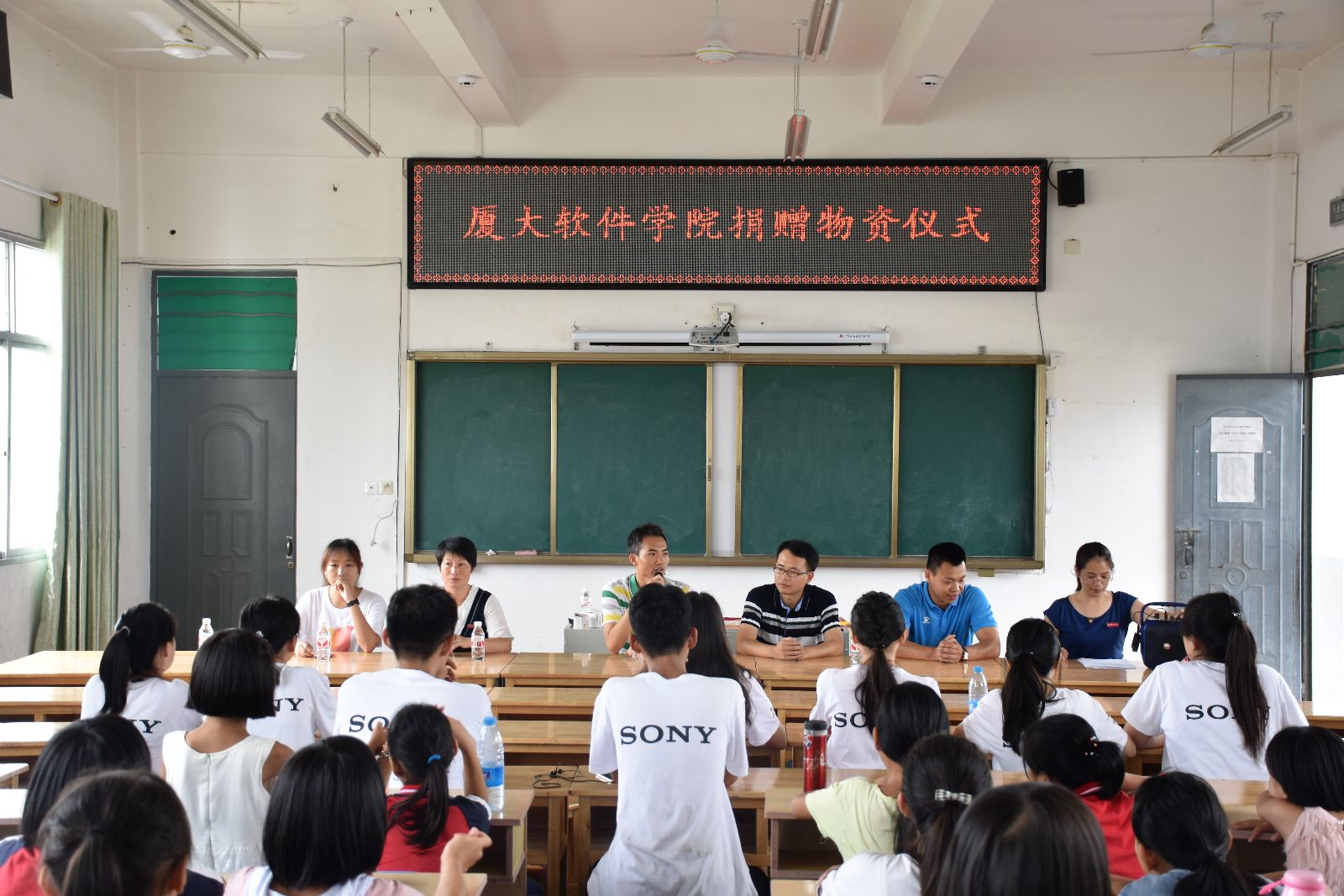 软件学院携手Sony中国总公司,为泰宁县朱口镇第一中心小学捐赠索尼多媒体投影机、索尼投影幕布、索尼音响等一套多媒体教育教学设备。此外,软件学院还携手“飞蚂蚁”、“善友筹”,为泰宁县朱口镇的小学生们捐赠200套崭新的秋季服装。