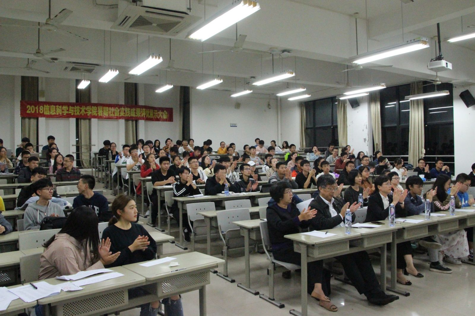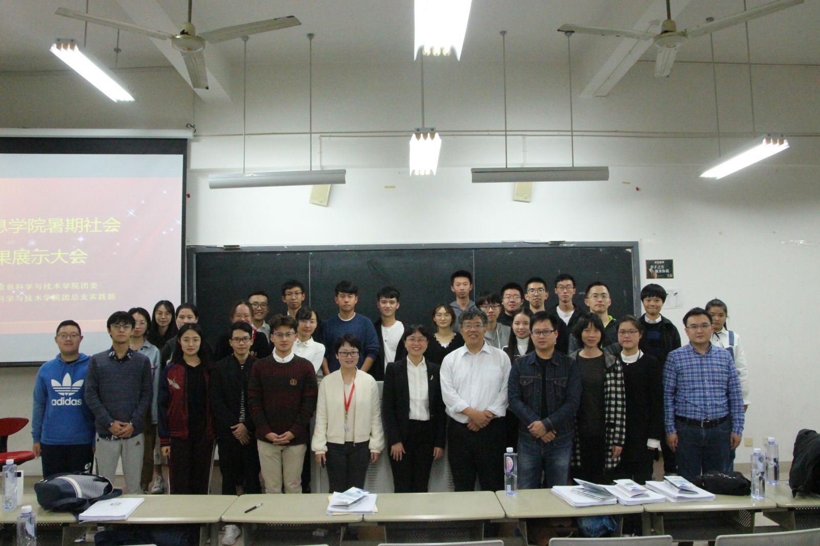 2018年11月2日晚19:00时,2018年厦门大学信息学院暑期社会实践成果展示大会在海韵教学楼204举行。根据前期实践成果评分情况,最终12支实践队伍脱颖而出,参加此次成果展示大会,为现场师生展示了丰富而精彩的社会实践成果,分享了社会实践经验。信息科学与技术学院党委副书记李承华老师、杨蔷,团委书记唐腾凤、团委副书记郑晖阁、黄艺明,辅导员蔡胜男、陈晨、廖炜以及学院学生会、本科生团总支主要学生干部参加此次大会。