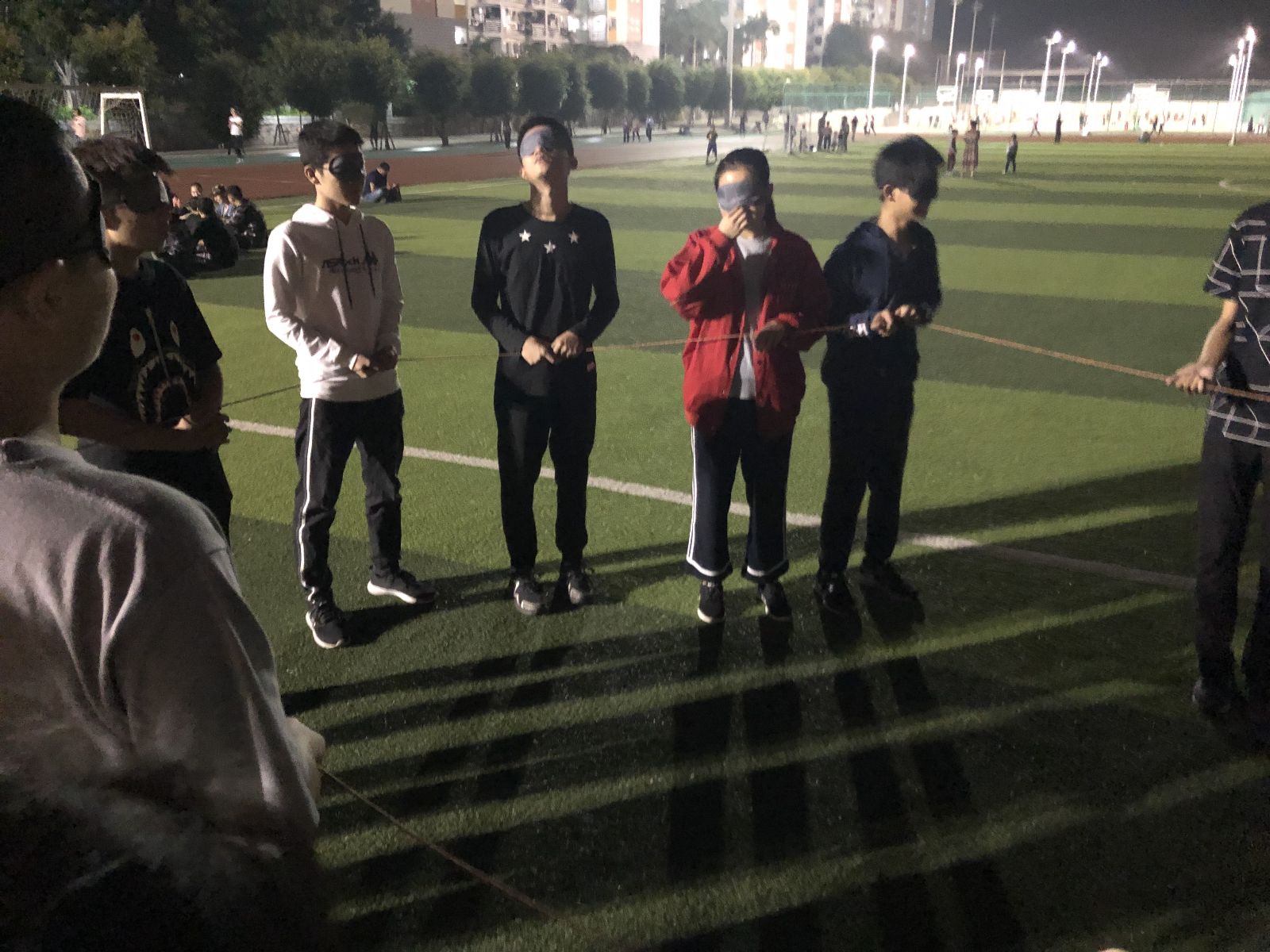 第三个游戏是“蒙眼围正方形”,当眼罩让世界黑暗、只有同伴的双手为伴时,似乎那一颗颗战战兢兢的心灵也因这绳子连在一起,而带给你最大的慰藉的是同伴的声音。当学姐说到只有一条边没围好的时候,没有人在埋怨是哪里出了问题,都在尽力去调整自己的姿势,可能这才是一个团队应该有的模样吧,出事一起扛,没有埋怨,只有努力去做更好的自己,努力去构建更好的团体。