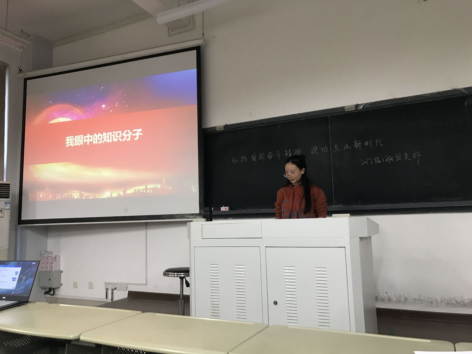 团课的下一个环节,同学们上台讲述了自己眼中的知识分子。钱学森,邓稼先,黄大年…尽管已经耳熟能详,但听到他们的故事依然令人热泪盈眶。声情并茂的讲述令同学们进一步了解了这些为国家做出奉献的可敬的知识分子们。之后,团支书带领大家进行游戏活动活跃了现场气氛。然后带领大家学习了中国共产党第十九次全国代表大会、中国共青团第十八次全国代表大会、厦门大学第十一次党员代表大会等报告精神。同学们发表了对此的感悟。